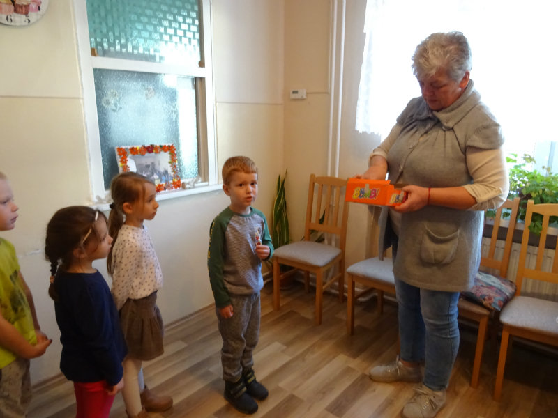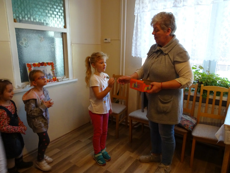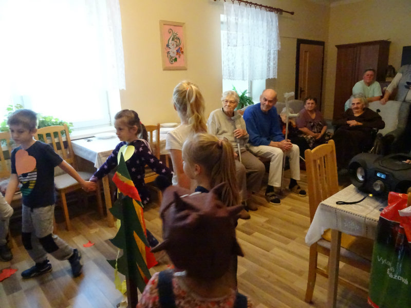 V pondelok, 21.októbra, sme išli my, deti 3. triedy MŠ pri cukrárni, potešiť starkých do DOS pri príležitosti mesiaca úcty k starším. Starkí boli veľmi radi , pri našom perfektnom jesennom divadielku mnohým vyhŕkli slzy do očí. Bolo to veľmi dojemné a zároveň krásne.