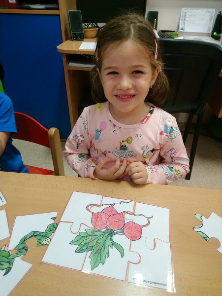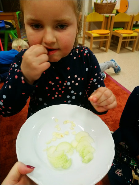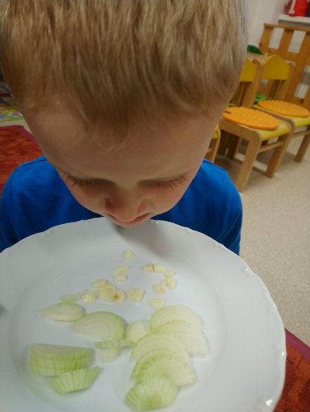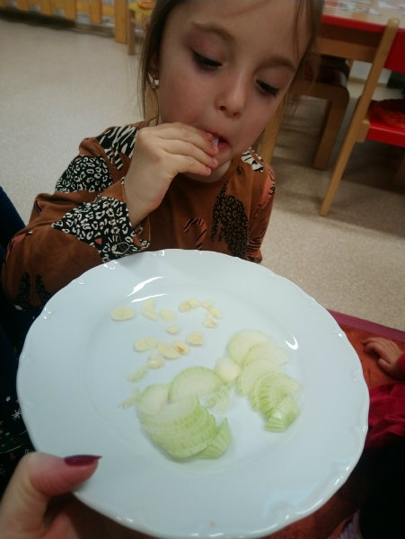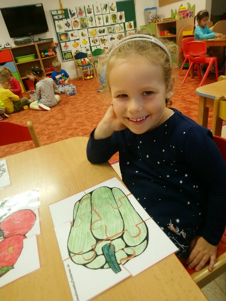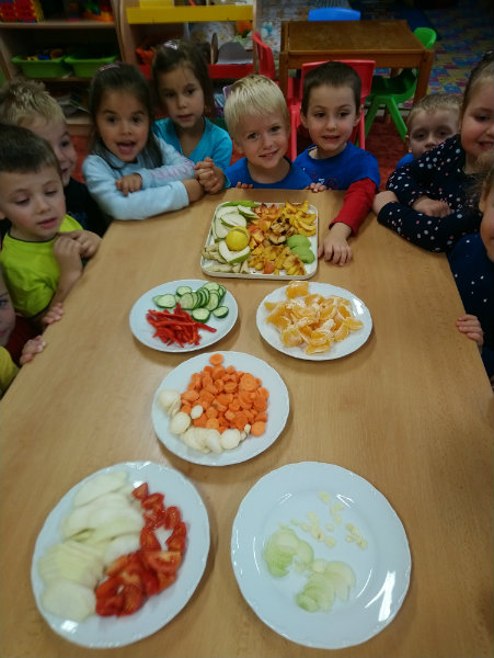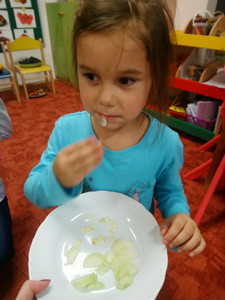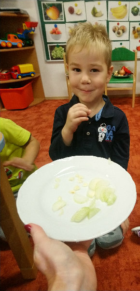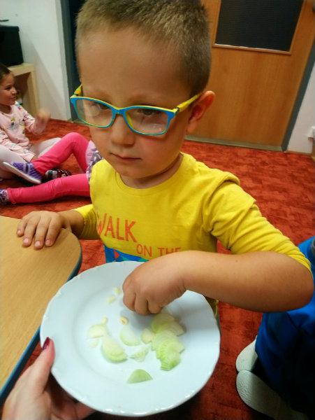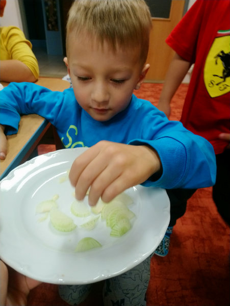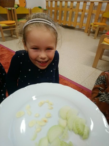 Usilovné včielky v mesiaci október priniesli do triedy na výstavku rôzne druhy ovocia, zeleniny, zážitkovým učením poznávali jej názvy, využitie, ale nezabudli ani na ochutnávku vybraných druhov, napríklad cibuľky...