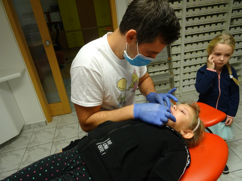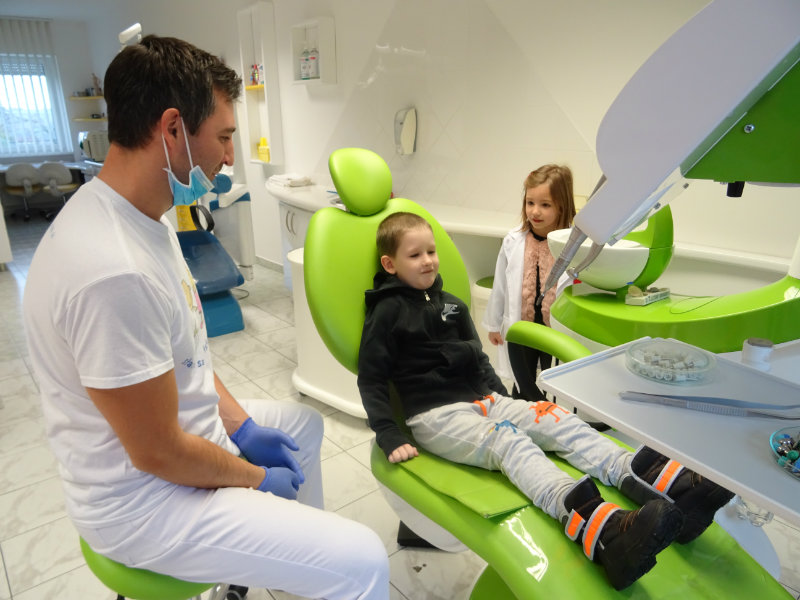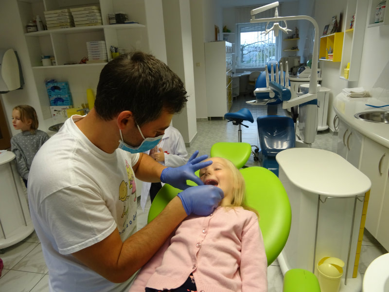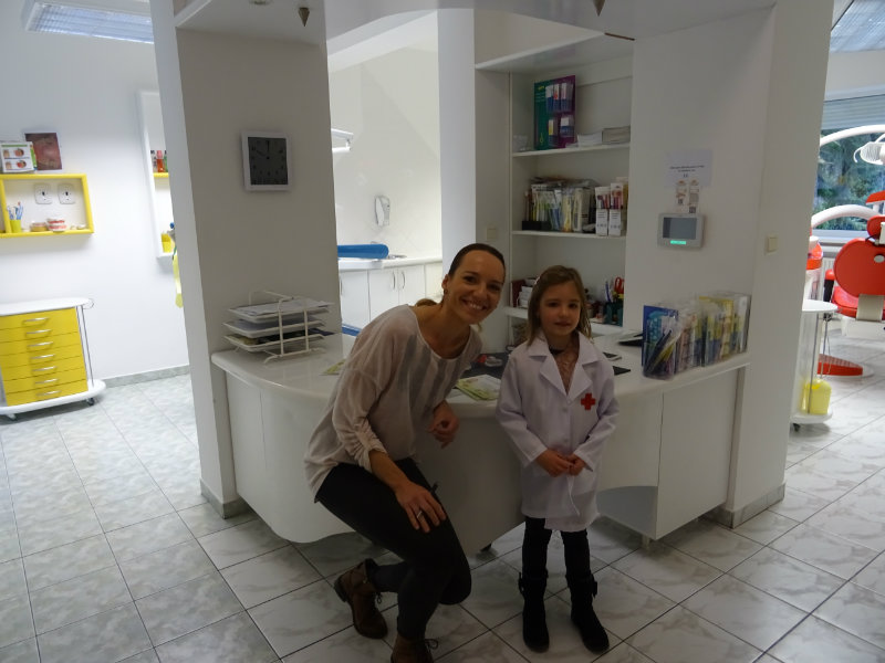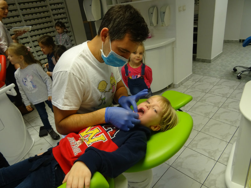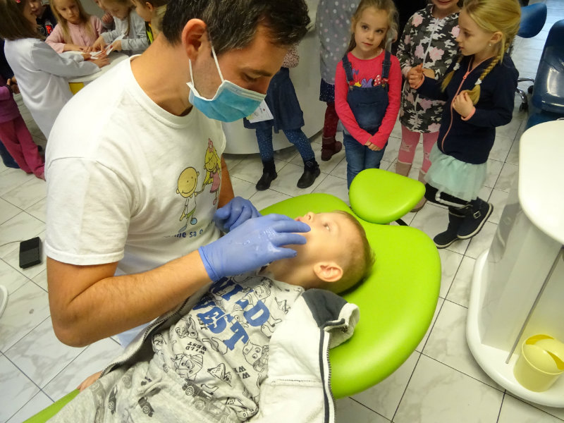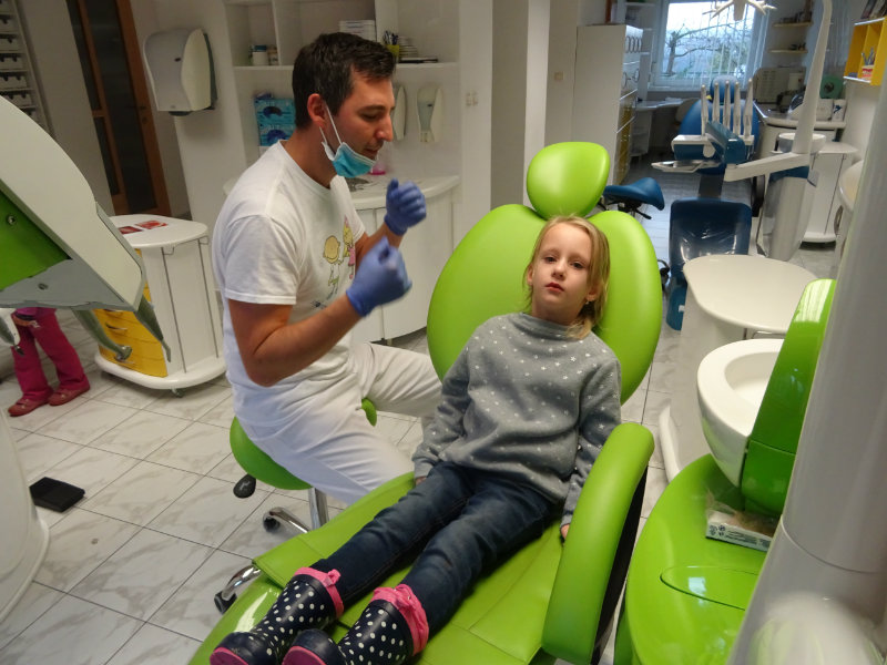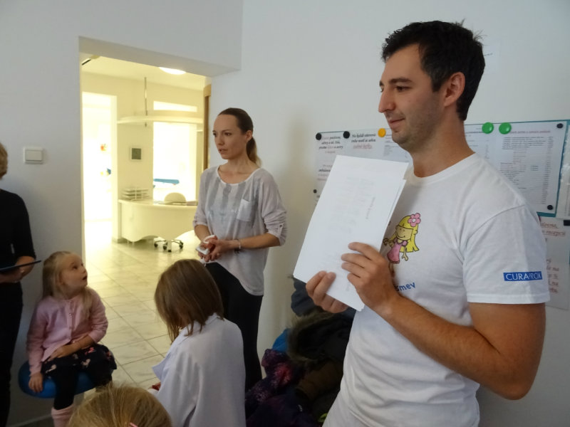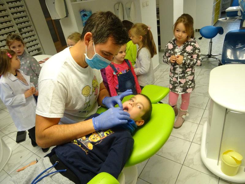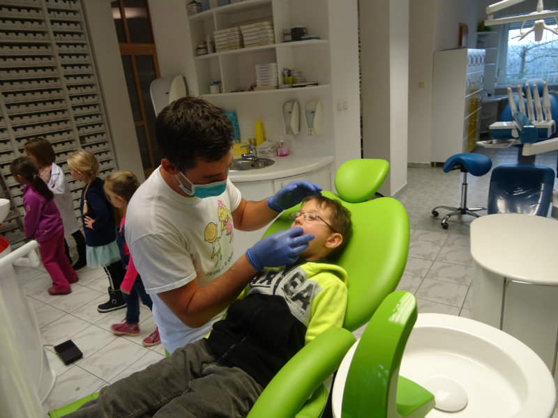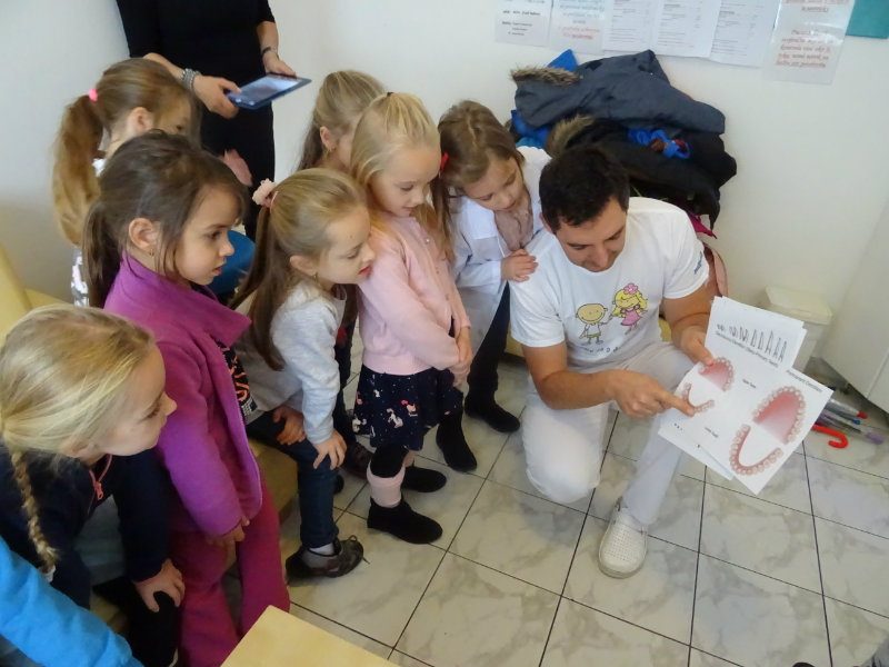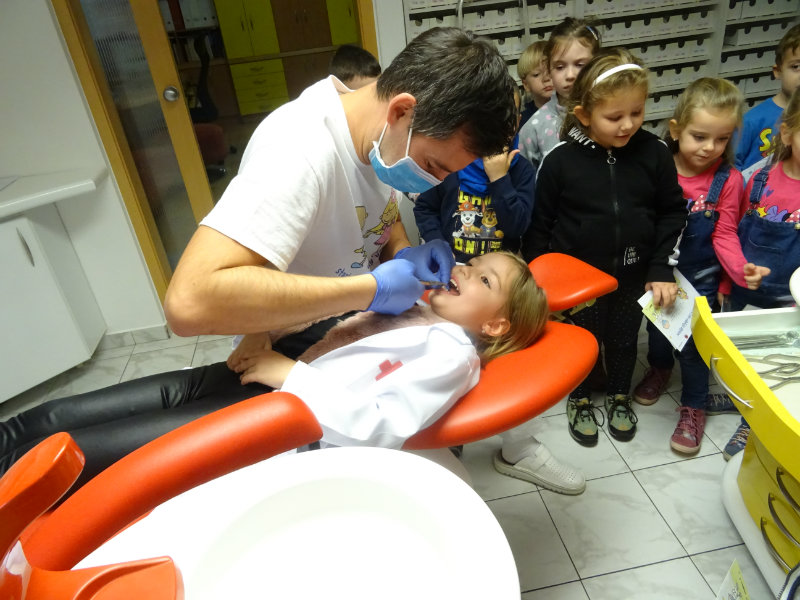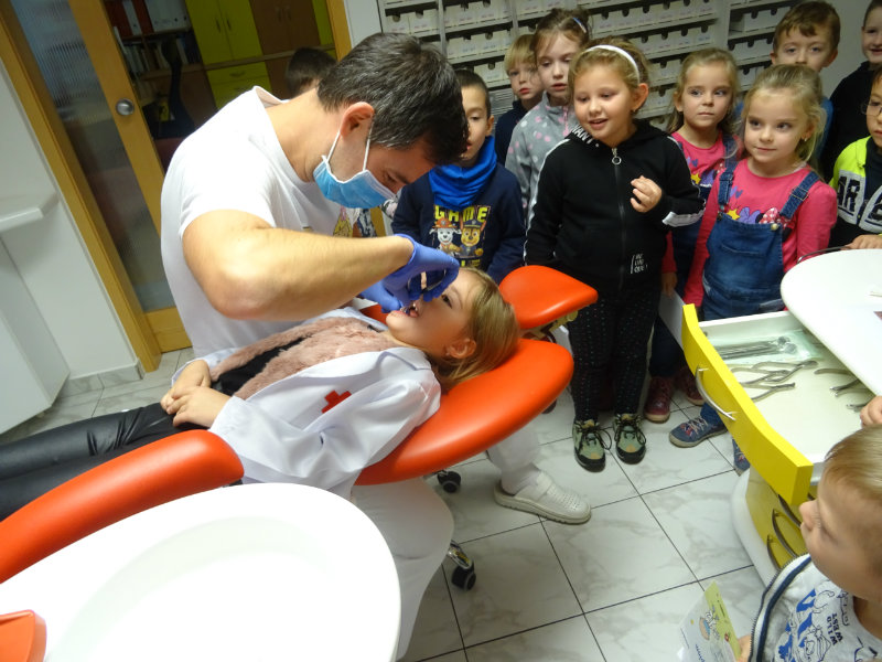 Ani upršaný deň nás neodradil od návštevy zubného lekára, pána Galbavého. Dňa 13.11. nás pozval do svojej ambulancie a za asistencie svojej dcérky Elišky, "zubnej sestričky", a pani manželky, oboznámili deti s prevenciou zubného kazu. Každému pán doktor skontroloval zúbky, povozil na kresle a za odvahu a statočnosť daroval diplom. Ďakujeme celej rodine Galbavej za čas a získané skúsenosti.