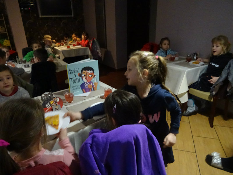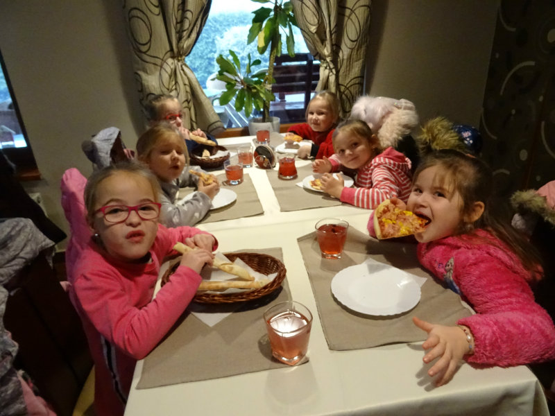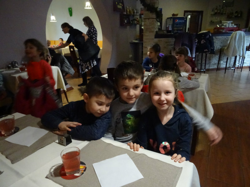 V utorok, 14. januára, sme zavolali našich kamarátov z 1.ročníka ZŠ do pizzerie Andiamo, kde pre nás Tamarka a teta Miškovičová pripravili novoročné pohostenie. Potešili sme sa navzájom krátkym programom a potom sme si pochutili na pizze. Ďakujeme veľmi pekne tete Miškovičovej a samozrejme našej kamarátke Tamarke za vynikajúce pohostenie .