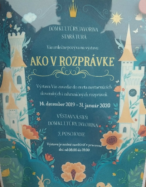 Usilovné včielky navštívili 17.1.2020 v KD Javorina výtvarno literárnu výstavu pod názvom Ako v rozprávke, zloženú zo známych ľudových i moderných rozprávok. Deti na výstave zaujali i rôzne predmety , ktoré používali naši predkovia, taktiež vyrezávanie tvárí a obrazov z dreva.