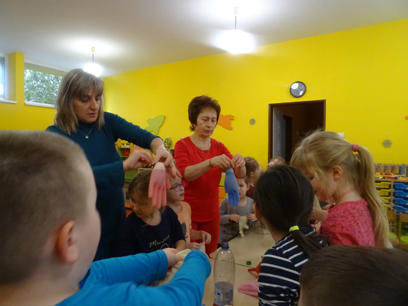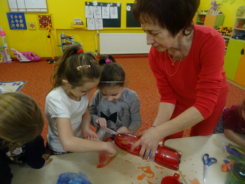 V utorok, 28.1. sme s pani učiteľkami robili pokusy: farbili sme vodu, miešali rôzne farebné odtiene, plnili do rukavíc , pokúšali sa zamraziť a vytvoriť krásne farebné ľadové kráľovstvo. Dnešný deň bol SUPER!!!