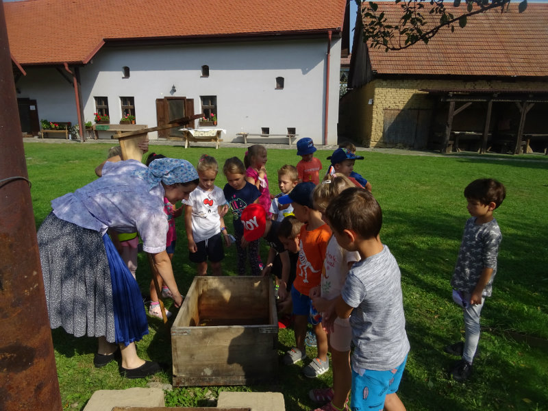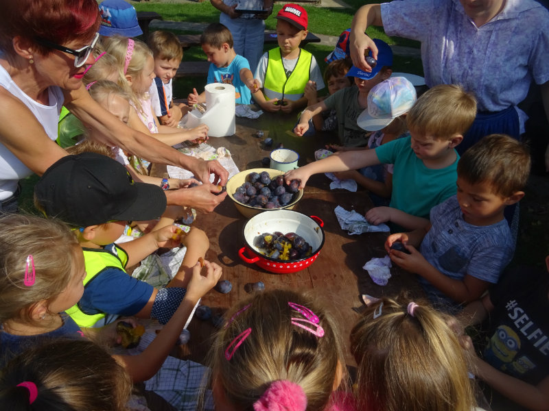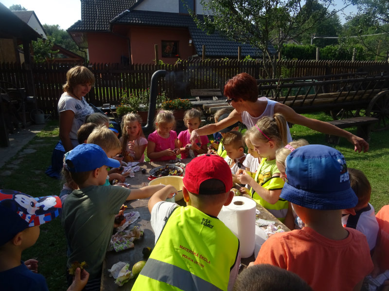 V stredu 16.9.2020 sme navštívili Gazdovský dvor v Turej Lúke, kde sme sa dozvedeli, ako sa varí slivkový lekvár. Skúsili sme si postup výroby a naučili sa aj ľudovú pesničku, tanček a pohybovú hru. Tešíme sa na ďalšie návštevy.