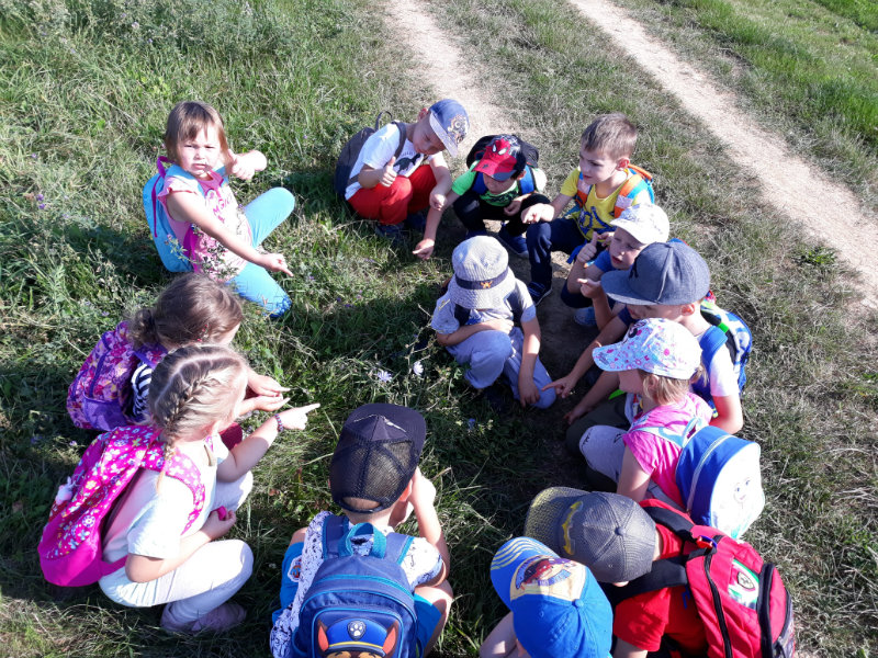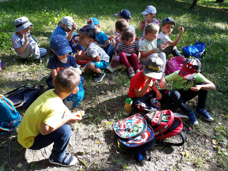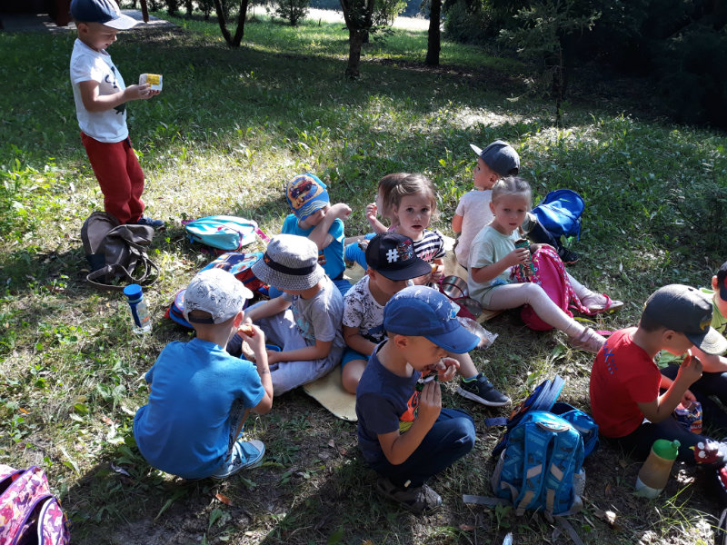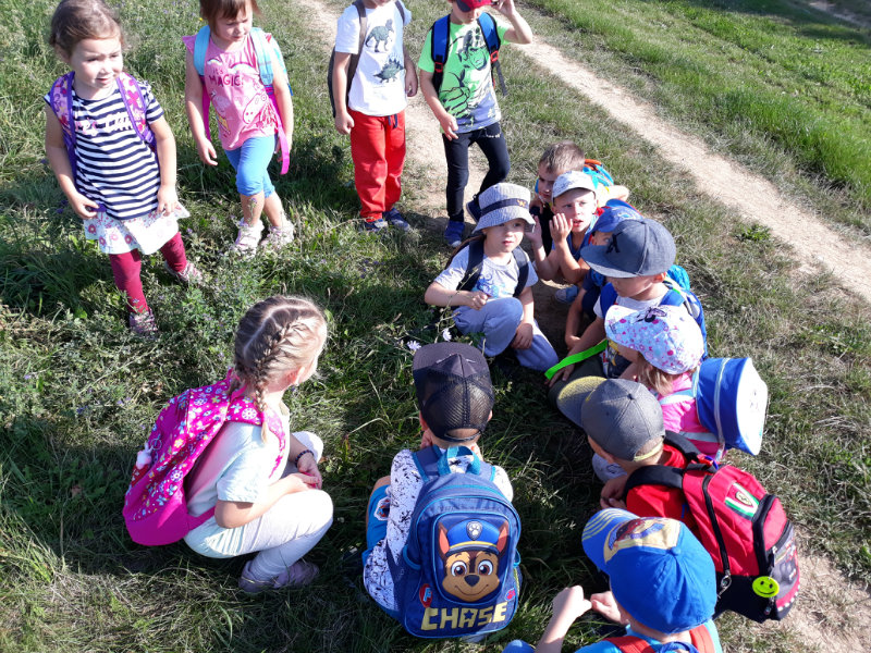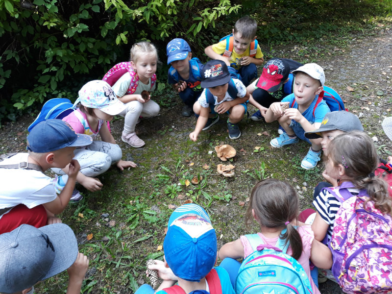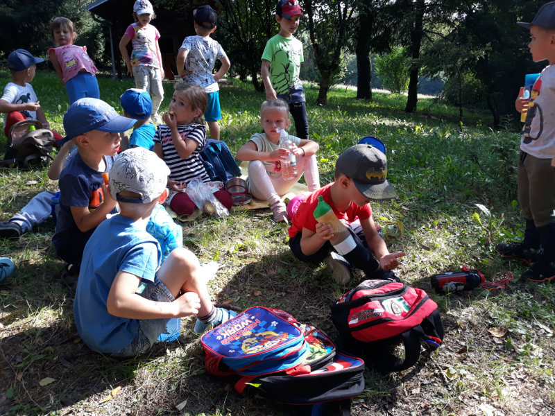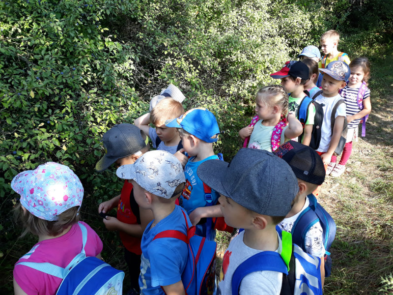Bol krásny slnečný deň a "slniečka" sa vybrali na turistiku. Cestou nás sprevádzali dvaja škriatkovia Šťavelko a Ríbezliačik.. Pomohli nám nájsť lesné plody, hríby, húsenicu i bodliak, ktorý roztrhal dúhovej víle šaty. Po namáhavej ceste sme si spravili piknik. Máme krásne zážitky.