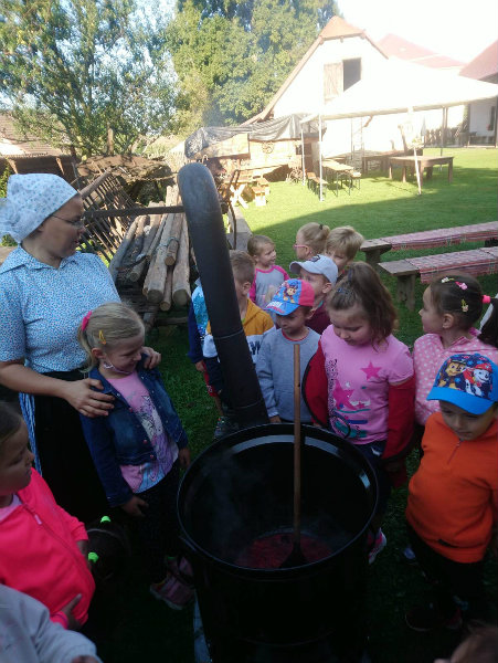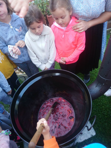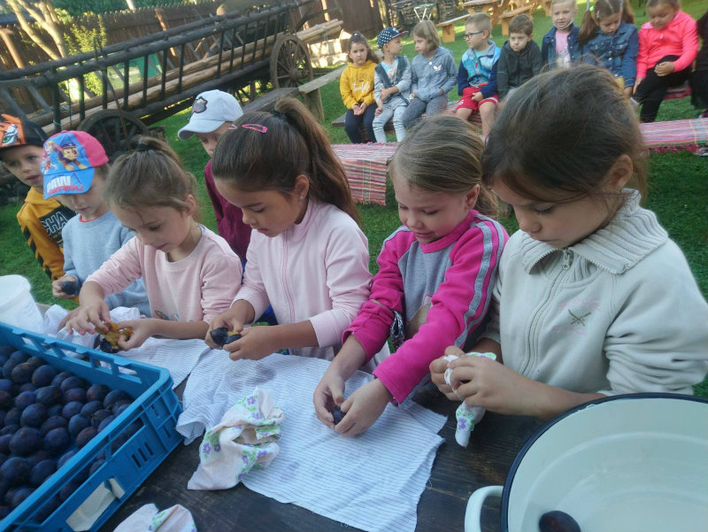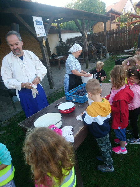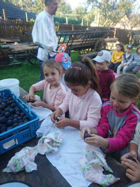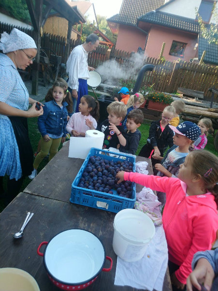 Tradičné jedlá zo sezónneho ovocia našich záhrad – zo sliviek, obsahujú nielen veľa vitamínov osožných pre náš organizmus, ale sa i zaujímavým spôsobom spracúvajú, o čom sa naše deti presvedčili vlastnými rukami pri príprave a samotnom varení slivkového lekváru. Nezabudlo sa ani na ľudové tradície , po práci si všetci spoločne zaspievali a zatancovali pri harmonike.