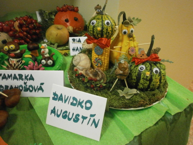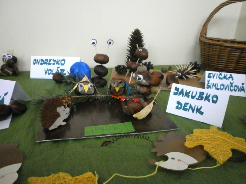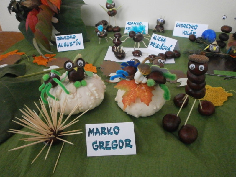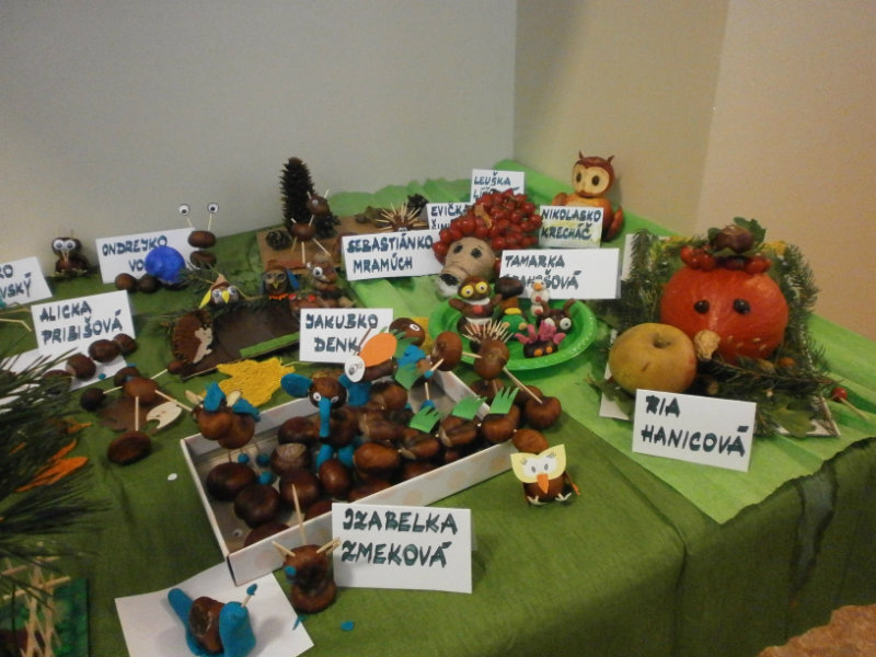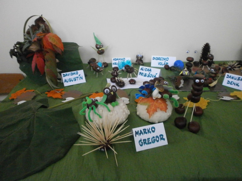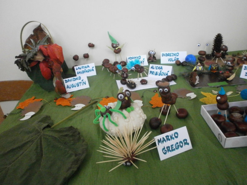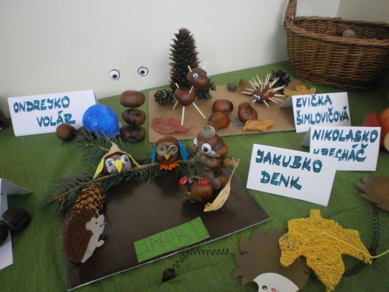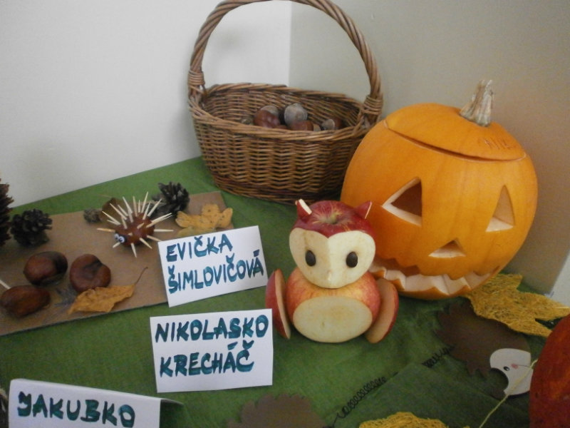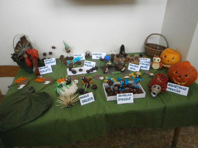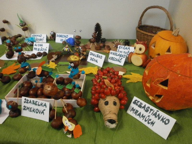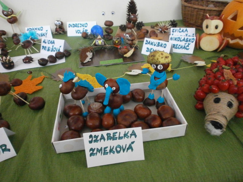 Jesenné obdobie v našej 1. triede je plné farieb, krásnych a kreatívnych výrobkov z plodov jesene , ktoré deti zhotovili doma spoločne s rodičmi , zdravého ovocia a zeleniny, z ktorého sme vyrábali zdravé šaláty, ochutnávku, výstavku nielen rôznych druhov ovocia a zeleniny, ale i možnosti jeho využitia v rôznych iných formách, využili sme na rozvoj fantázie i jesenné lístie počas pobytu vonku...