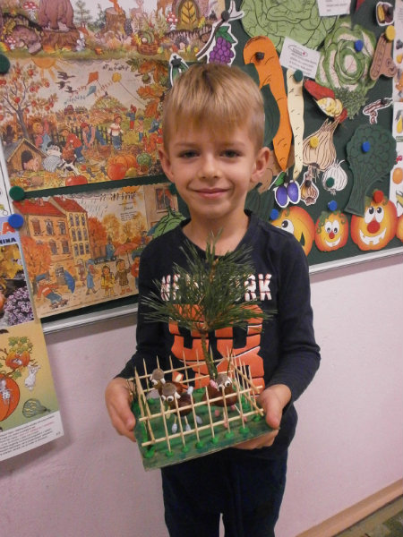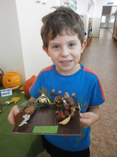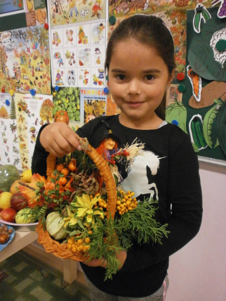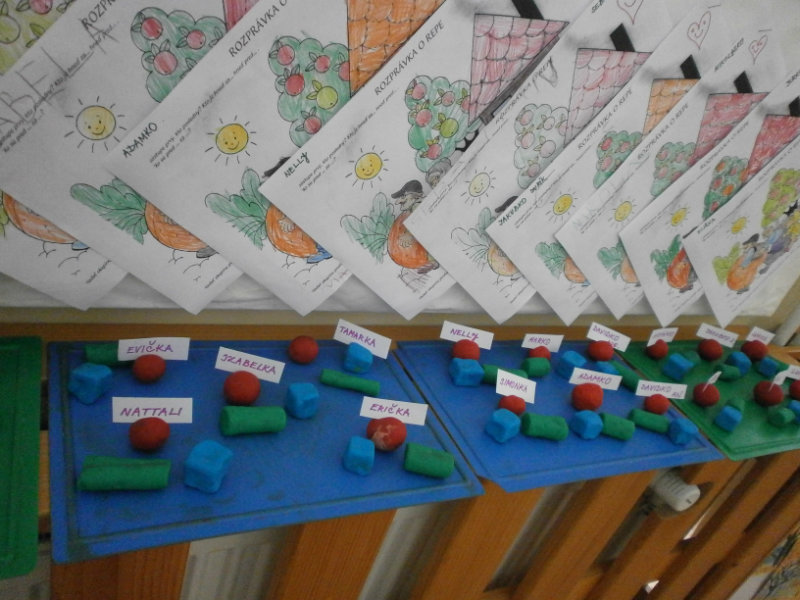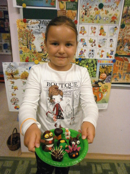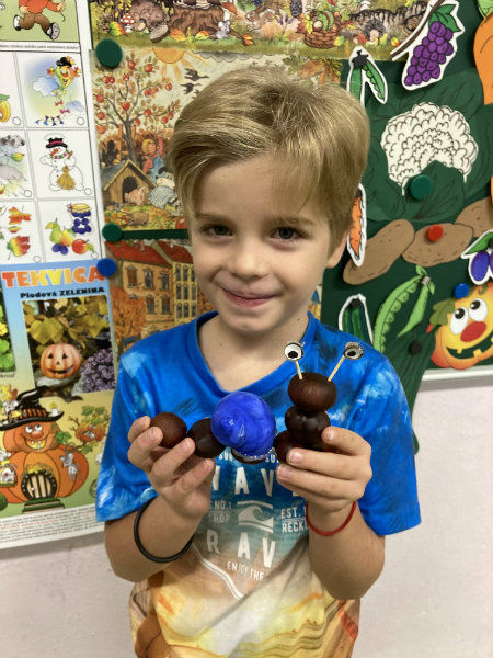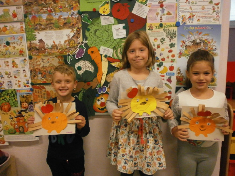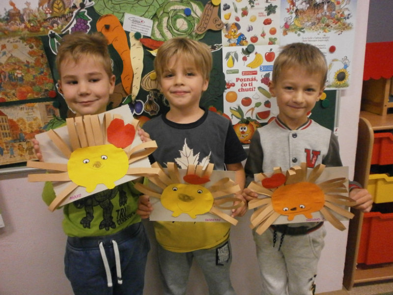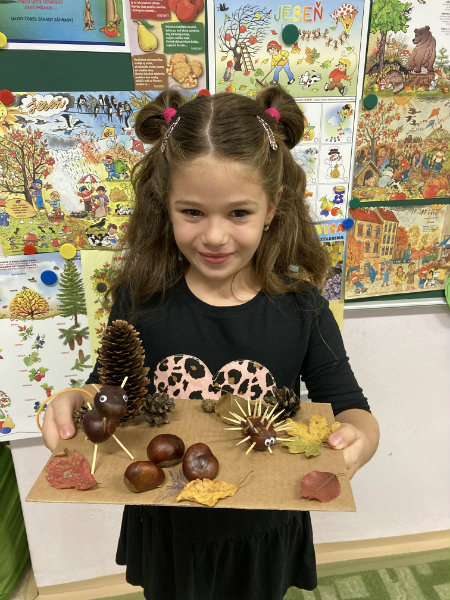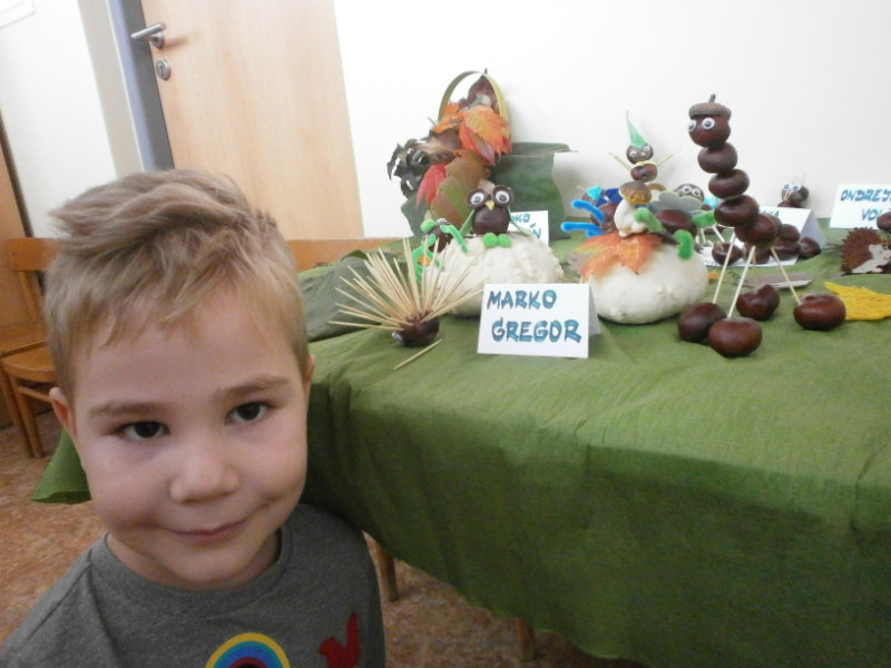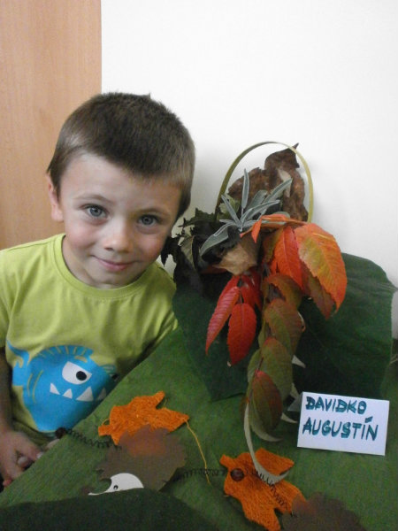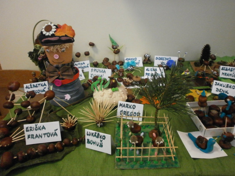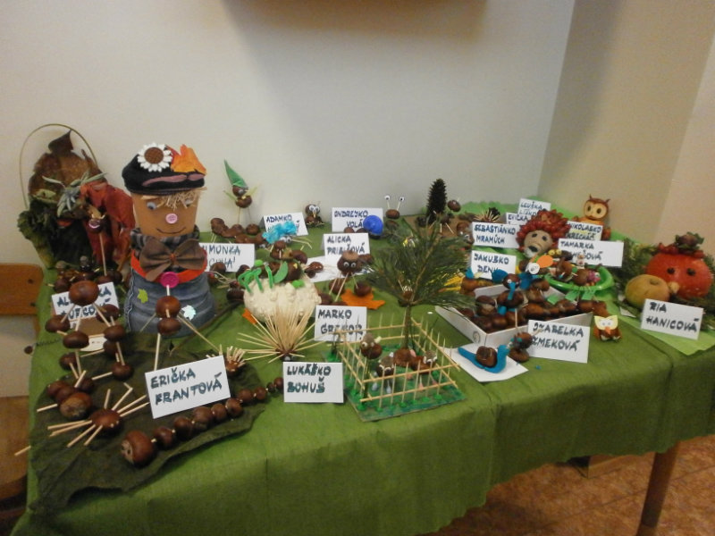 Jesenné obdobie v našej 1. triede je plné farieb, krásnych a kreatívnych výrobkov z plodov jesene , ktoré deti zhotovili doma spoločne s rodičmi , zdravého ovocia a zeleniny, z ktorého sme vyrábali zdravé šaláty, ochutnávku, výstavku nielen rôznych druhov ovocia a zeleniny, ale i možnosti jeho využitia v rôznych iných formách, využili sme na rozvoj fantázie i jesenné lístie počas pobytu vonku...