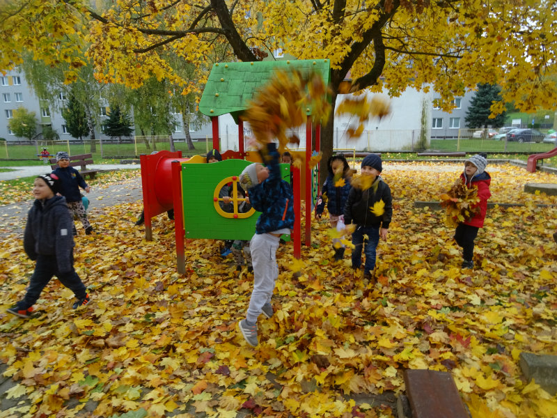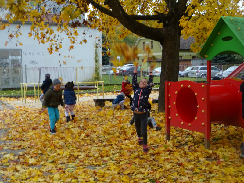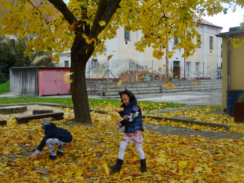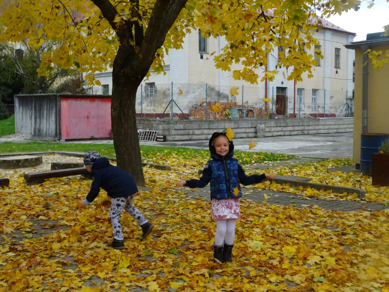 "Jeseň pani bohatá, listy má zo zlata..." pre nás v pondelok na školskom dvore pripravila milé prekvapenie v podobe "zlatého koberca". Najskôr sme sa s listami pohrali a potom sme ich aspoň sčasti pohrabali, aby sme trošku prispeli k úprave nášho okolia.