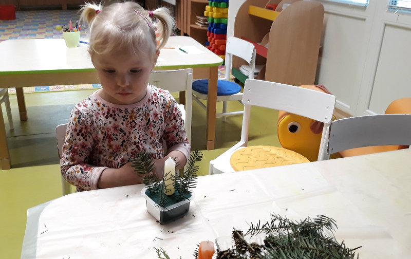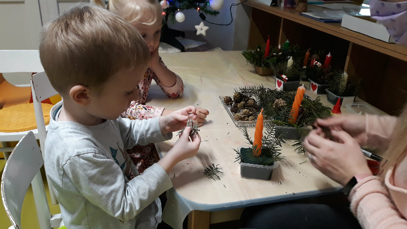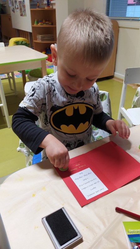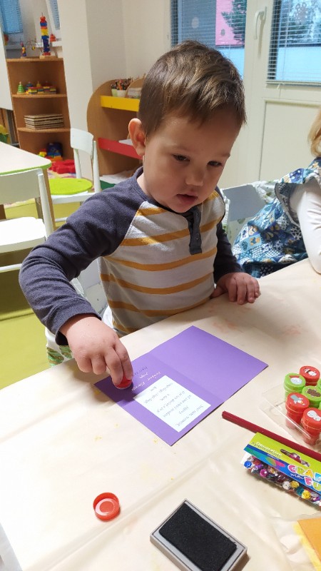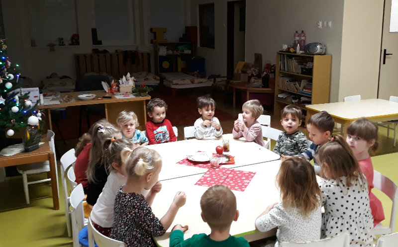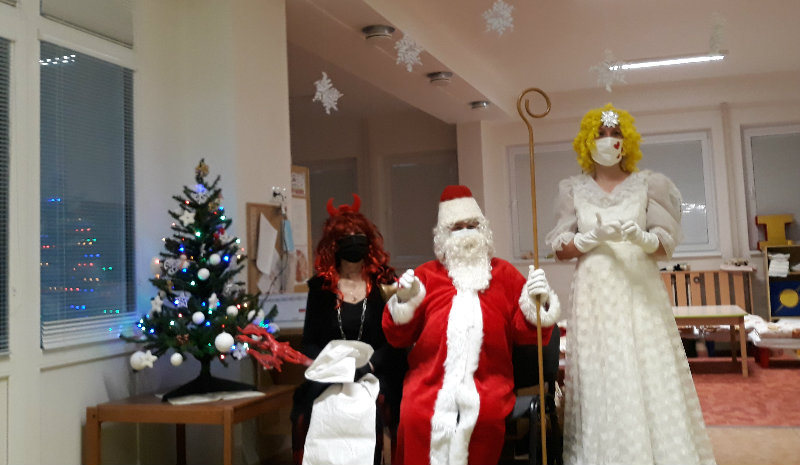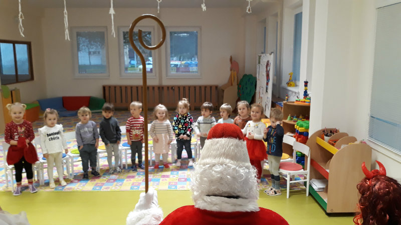 Nastal čas adventu - obdobie, keď u detí kulminuje ich zvedavosť, očakávanie a nadšenie z príchodu Vianoc. Najskôr sme si vyzdobili stromček, triedu, šatňu, aby sme mohli privítať Mikuláša. Napriek počiatočným obavám pri príchode Mikuláša a jeho pomocníkov anjela a čerta sa na tvárach detí postupne zjavili úsmevy. Dokázali sme im zarecitovať básničku a zaspievať pesničku, za čo sme dostali od Mikuláša taštičku s dobrotami.