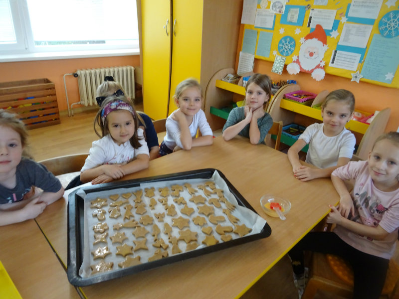Deti zo 4.triedy vyhrnuli rukávy a pustili sa do pečenia medovníčkov. Podarili sa. Môžu prísť Vianoce.