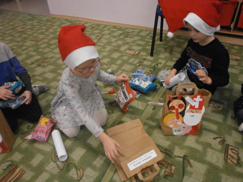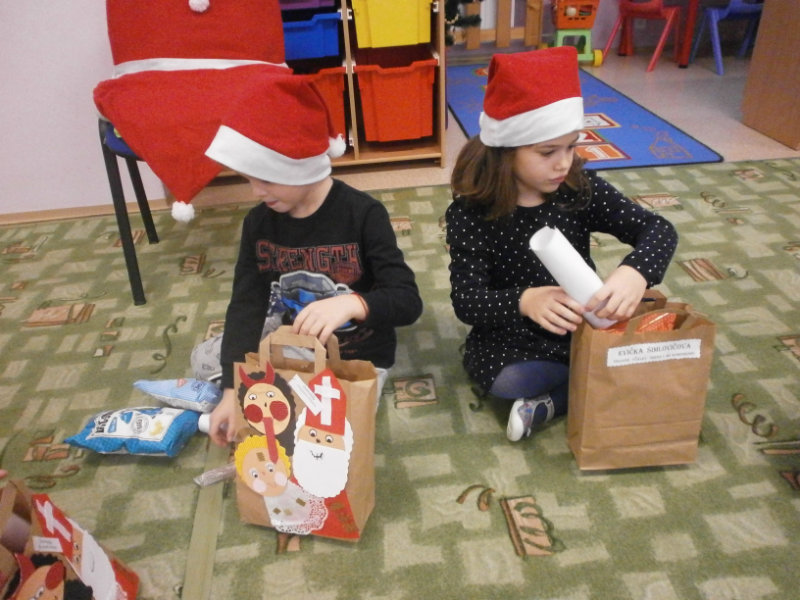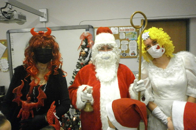 Mikuláš nezabudol na Usilovné včielky, predškolákov z MŠ Komenského a naplnil dobrôtkami ich vlastnoručne zhotovené mikulášske taštičky. Spolu s Mikulášom sme privítali v našej triede i čerticu Alicu s jej nebezpečnými vidlami a dobrého Anjelika.