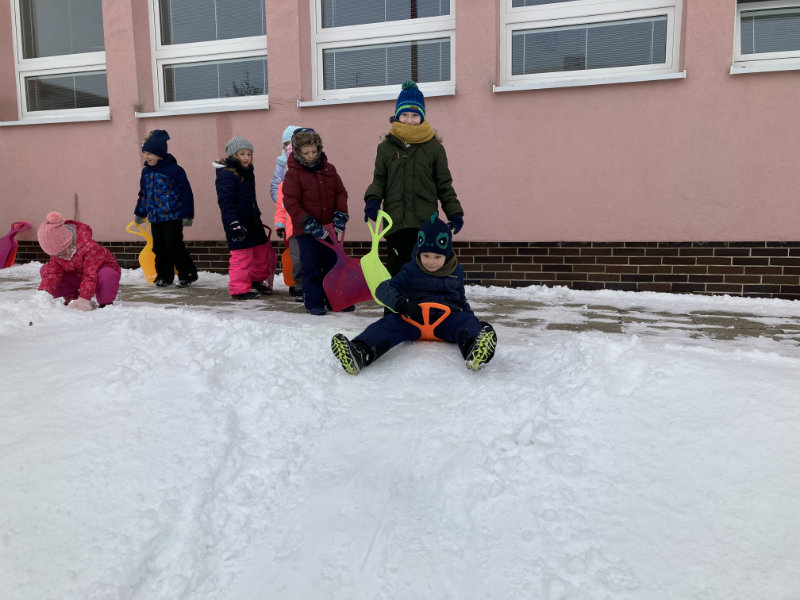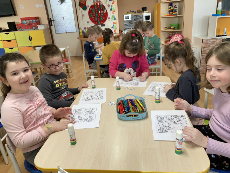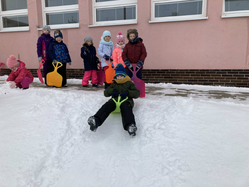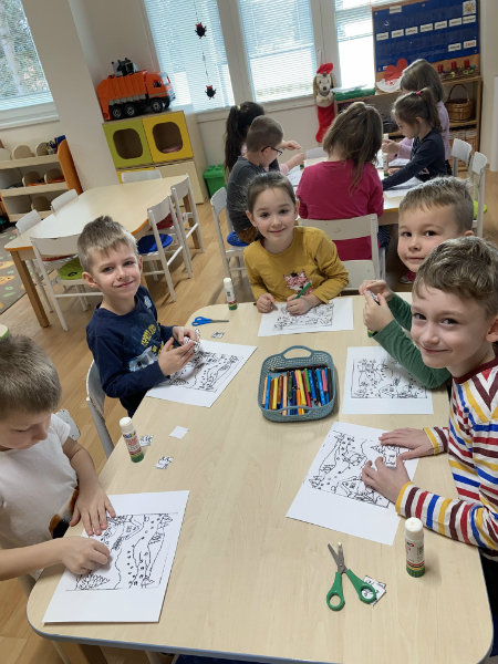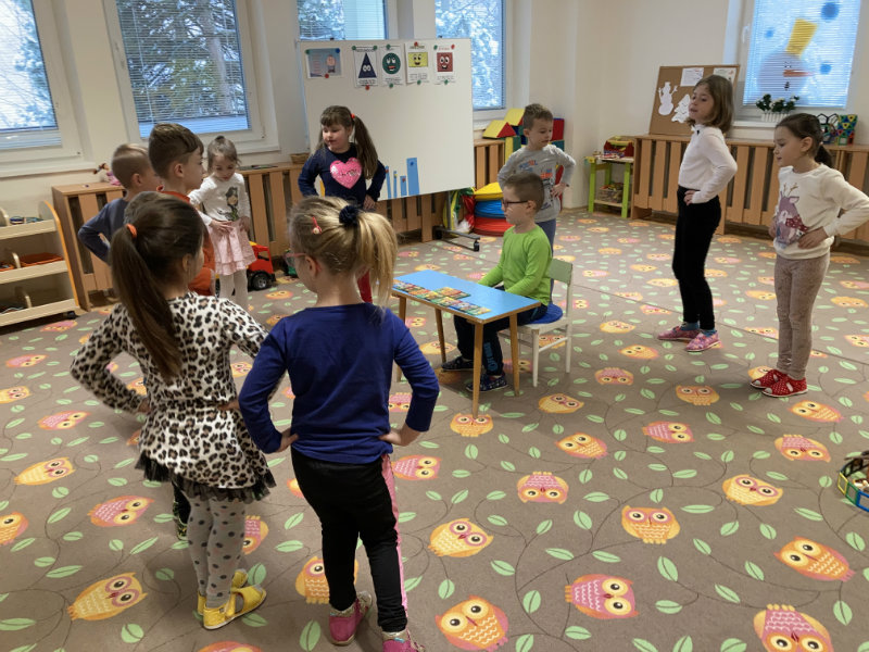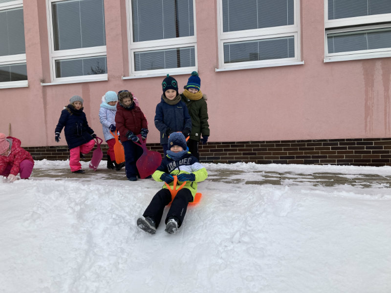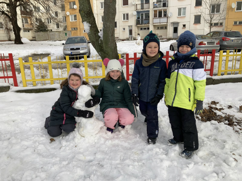 Predškoláci Usilovné včielky sa tešili z bielej snehovej nádielky, formou rôznych hier a aktivít pracovali s témami jednotlivých týždňov.