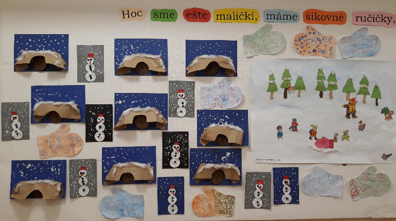 ,,Sedí vrabec na haluzi, smutne čviriká, tlačí sa mu pod krídelká zima veliká. Nasypme mu, deti, omrviniek pár, nech si zobne, lebo ešte ďaleko je jar...“