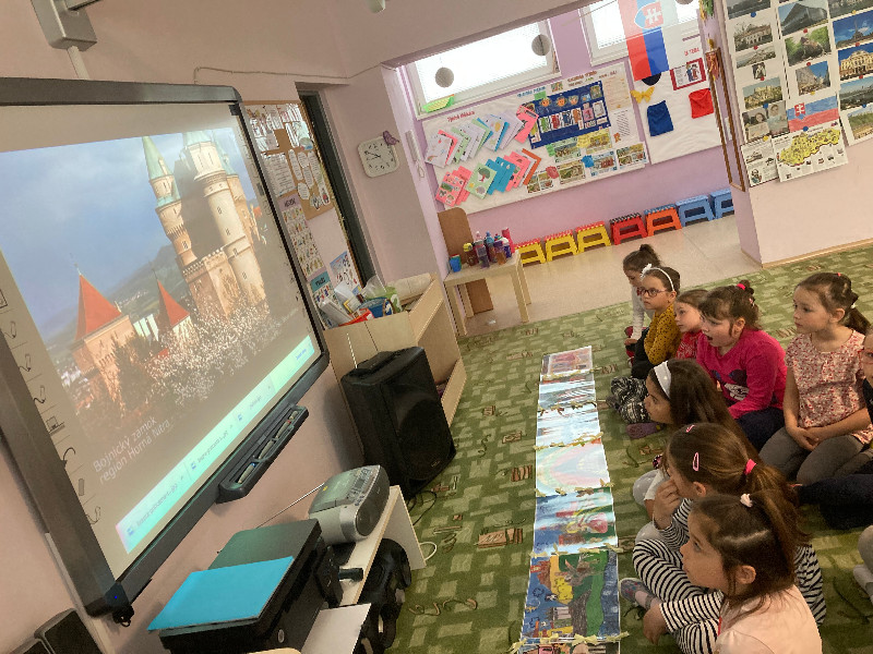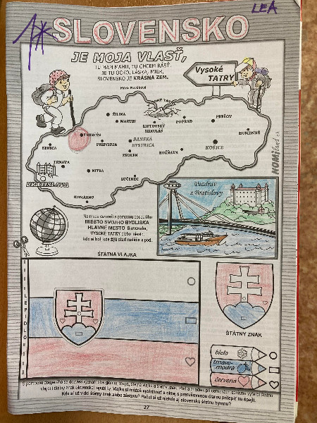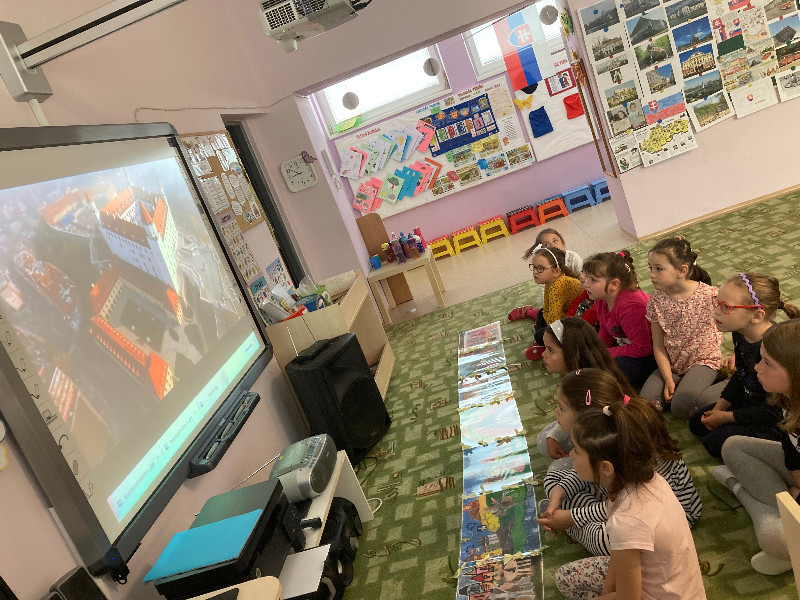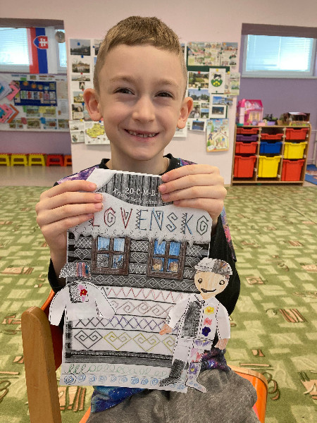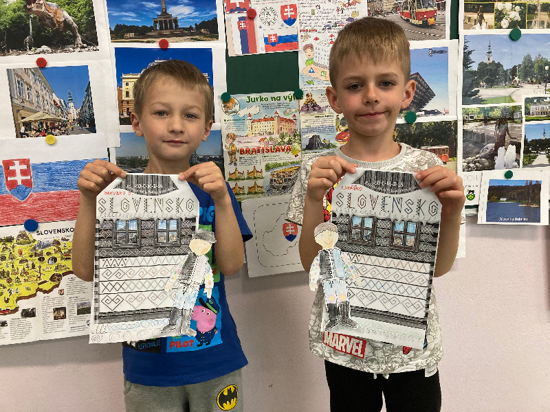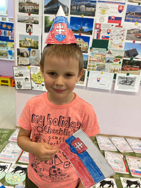 Slovensko moja vlasť, interaktívne cestovanie po Slovensku, spoznávanie jeho krás a prírodného bohatstva, národných symbolov, významných Slovákov, Slovensko v minulosti, s týmito témami sme pracovali po celý týždeň prostredníctvom rôznych médií, detskej náučnej literatúry, formou hier, s prezentáciami, výtvarným i hudobným vyjadrením.