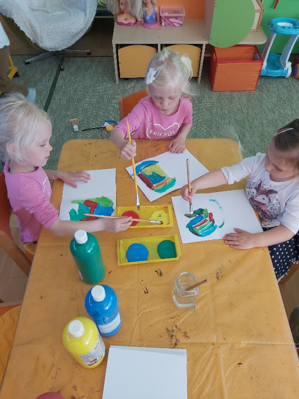 čarujeme s plastelínou, kocky, korálky - navliekanie, naša rodina, čo sme si nasadili to si aj zjeme - mladá cibuľka :), naučili sme sa niečo o Slovensku, Starej Turej a vyrobili sme si aj vlajky :) dozvedeli sme sa ako si včielky stavajú svoje domčeky, kde vyrábajú med, hrali sme sa s lienkami a fotili sme sa :) koniec mesiaca sme zavŕšili turistickou vychádzkou, na ktorej sme okrem hmyzu pozorovali aj daniele a sliepočky :)