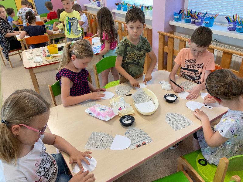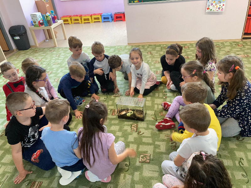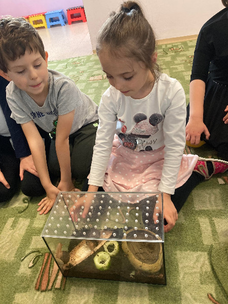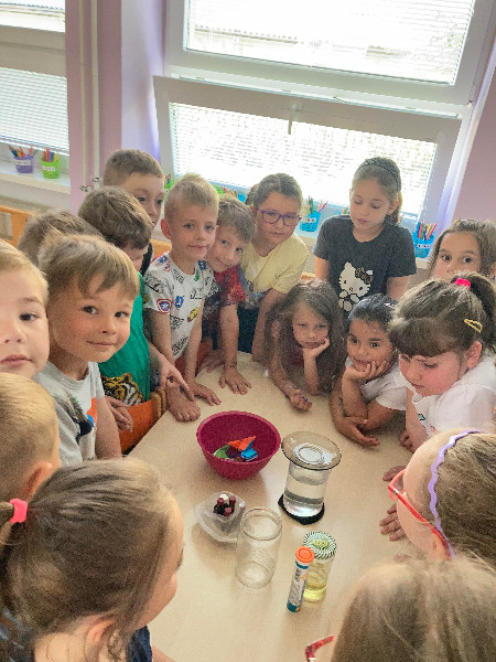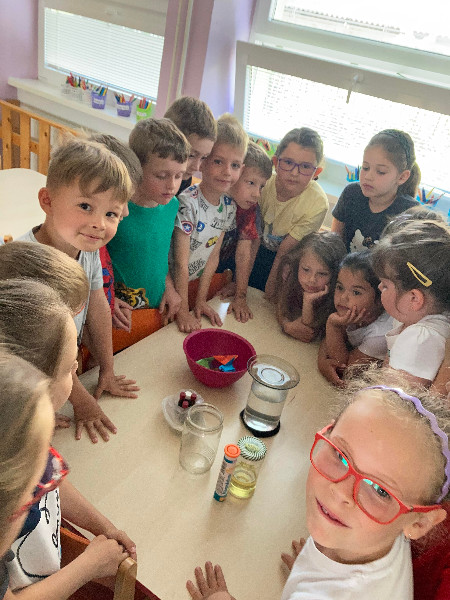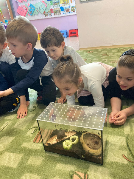 Pozorovanie slimákov Leušky Líškovej bolo pre deti bezprostredným zážitkom, ako i rôzne zaujímavé pokusy a maľovanie s vodou v týždni Voda a jej tajomstvá.