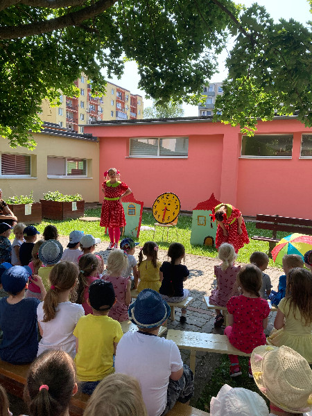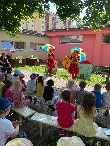 Predškoláci Usilovné včielky sa zúčastnili divadielka Janka a Danka a kultúrneho programu detí zo ZUŠ Stará Turá. Predstavenia sa uskutočnili v exteriéroch záhrad MŠ Hurbanova 143 a MŠ Komenského.