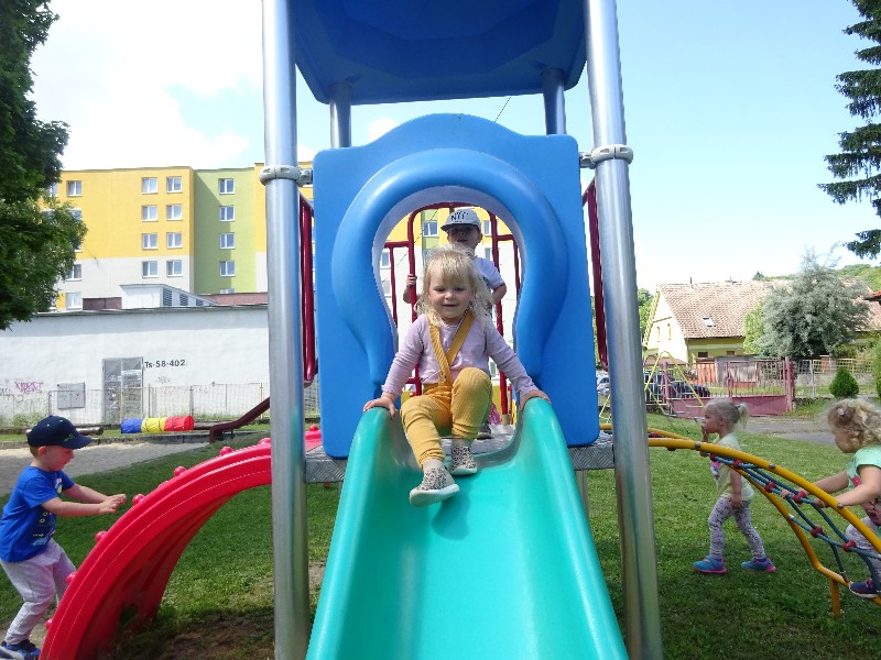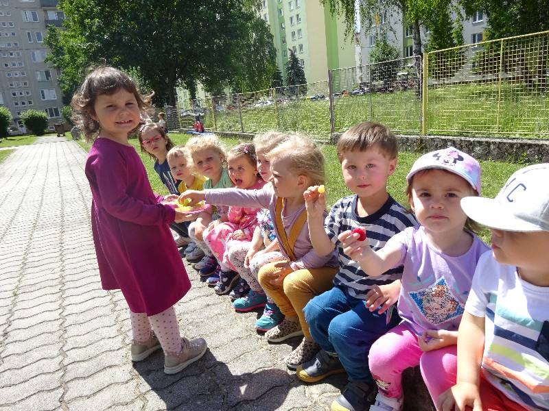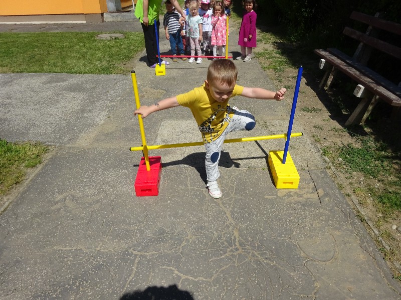 Pondelok 14.júna 2021 sa niesol v znamení športových hier v areáli našej MŠ. Aj my, deti z 1.triedy, sme as k nim s radosťou pridali. Preliezali sme cez tunel, cvičili na fitness posilovacích strojoch, hádzali na cieľ, chodili pomedzi kužele a zdolávali prekážky. Bolo nám hravo, zdravo a veselo. Na koniec sme sa občerstvili zdravým ovocím, ktoré nám priniesla naša kamarátka Peťka pri príležitosti svojich narodenín.
