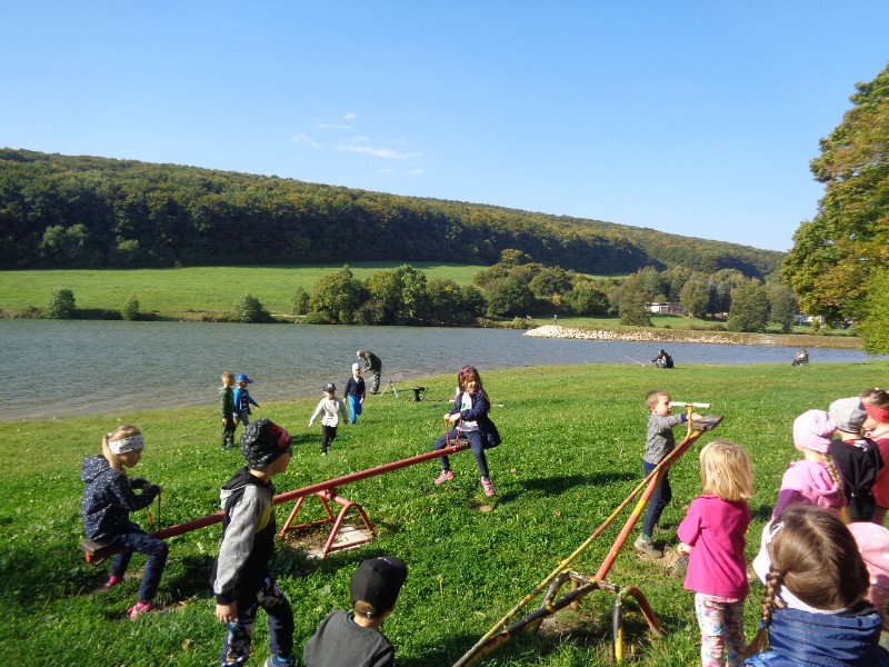 V utorok 5.10.2021 sme využili teplé a slnečné počasie na turistickú vychádzku na Dubník. Cestou sme pozorovali okolie potoka, lesné cestičky či rybárov pri love pstruhov. Na pláži sme sa zahrali na ihrisku a posilnili na spiatočnú cestu. Všetci sme zvládli cestu rôznym terénom.
