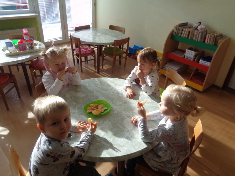 Hoci sme maličkí, vieme, že ovocie je zdravé, preto sme venovali celý týždeň "Jabĺčku". Modelovali sme ho, vymaľovávali, hrali sme sa s maketami ovocia, zahrali sme si divadielko "Jabĺčko" podľa rozprávky Sutejeva a samozrejme sme si urobili aj ochutnávku.