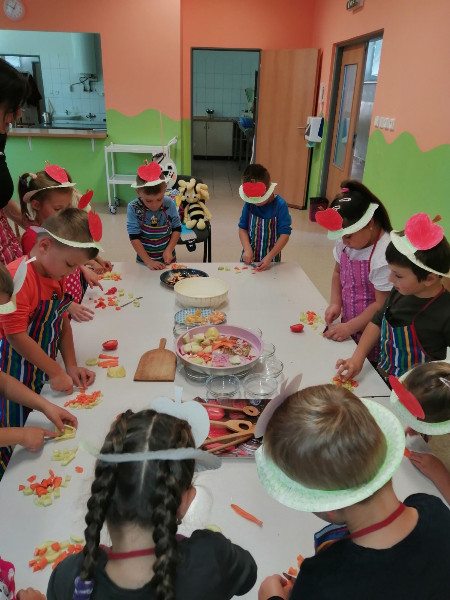 Deťom sa páčilo, keď sa popri konzumácii ovocia a zeleninky nielen zabavili a zahrali na malých kuchárov, ale zároveň získali nové vedomosti a zručnosti.