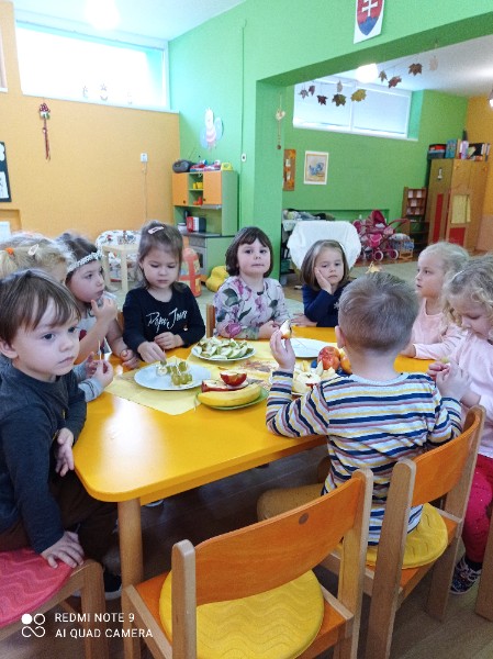Mesiac október bol v našej triede Chrobáčikov spestrený rôznymi jesennými aktivitami. Počas babieho leta sme sa dosýta vyšantili pod stromami s farebným lístím. V spolupráci s rodičmi sa uskutočnila súťaž o najkrajšieho „Gaštanka“ vytvoreného z prírodnín. Ďakujeme všetkým rodinám, ktoré sa aktívne zapojili za spoluprácu, kreativitu a krásne výtvory. S deťmi sme absolvovali aj exkurziu na Staroturiansku tržnicu, kde sme mali možnosť vidieť pestrosť druhov ovocia a zeleniny. V rámci Svetového týždňa zdravej výživy a Dňa jablka sme konzumovali rôzne druhy ovocia a pripomenuli sme si potrebu zdravého stravovania sa.