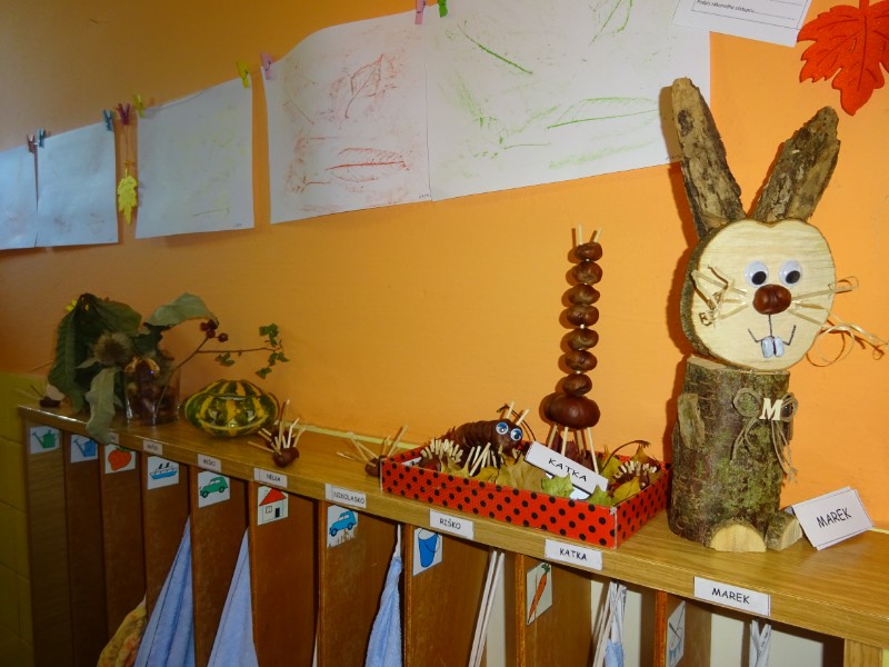 Každý rok sa na jeseň tešíme z toho množstva všakovakých plodov. S pomocou mamičiek a ockov sme si doma vyrobili zaujímavé výtvory. Doniesli sme si ich do škôlky a vyzdobili nimi spoločné priestory umyvárne. radosť nám robili niekoľko týždňov.
