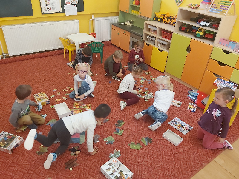 V novembri sme skladali puzzle, naučili sme sa ako sa starať o zúbky, naše telo a ako sa zdravo stravovať. S kamarátmi zo 4tej triedy sme boli zaniesť darčeky pre seniorov. Boli sme aj na brannej vychádzke na Dráhach odkiaľ sme sledovali okolie Starej Turej a keďže sme mali aj škaredé počasie spravili sme si kino a pozreli našu obľúbenú Patrolu :) gratulovali sme Charlottke k narodeninam a na záver mesiaca sme písali list Ježiškovi :)