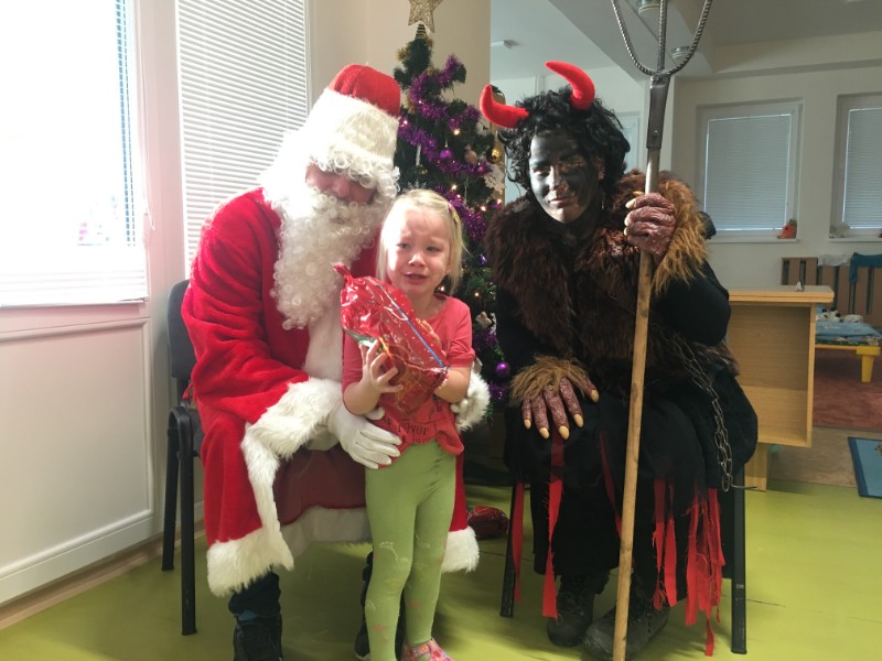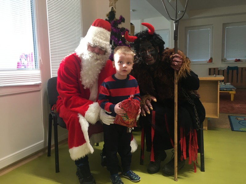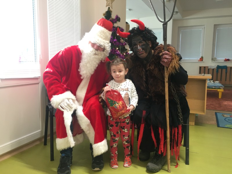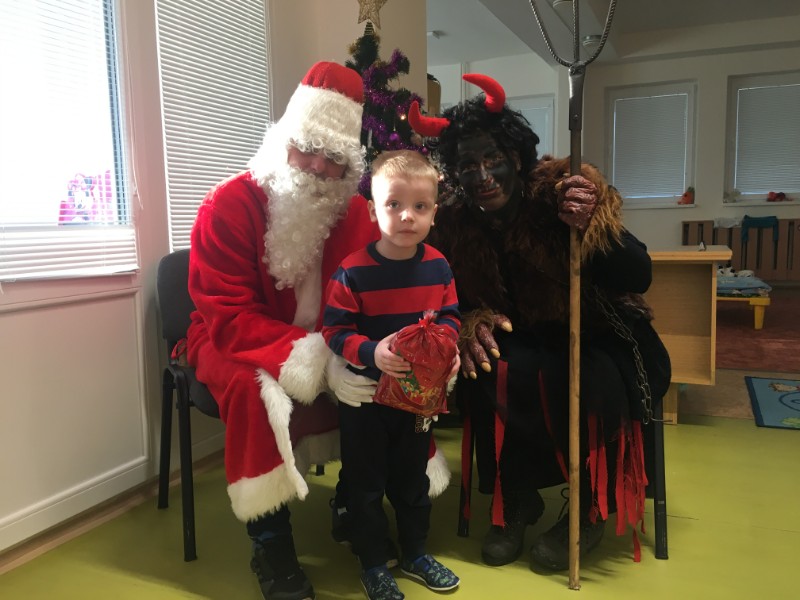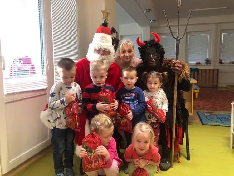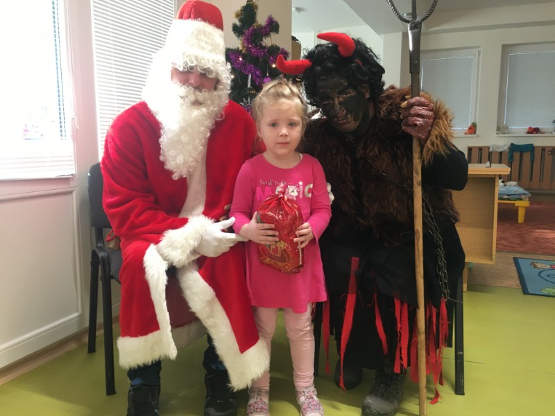 Vitaj v našej škôlke milý Mikuláš - touto krásnou piesňou vítali maličké detičky v MŠ Mikuláša, ktorý si priviedol na pomoc i čerta.