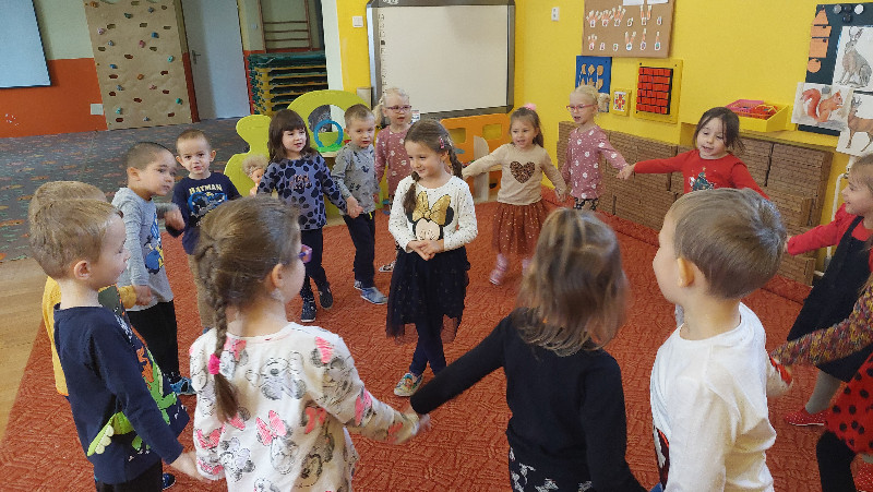 V Januári sme oslavovali s Kristínkou a Lenkou, hrali sa s novými hračkami a plyšovými zvieratkami. Zúčastnili sme sa divadielka, ktoré pre nás pripravili pani učiteľky a aj my sme si zahrali divadielko " Deduškova rukavička "