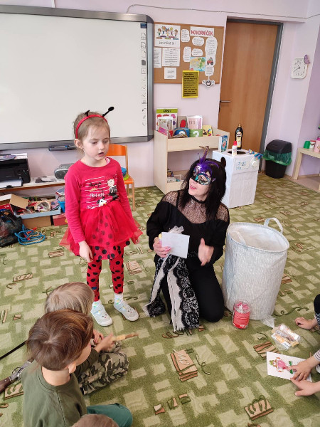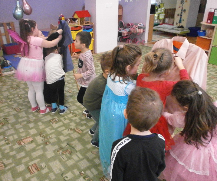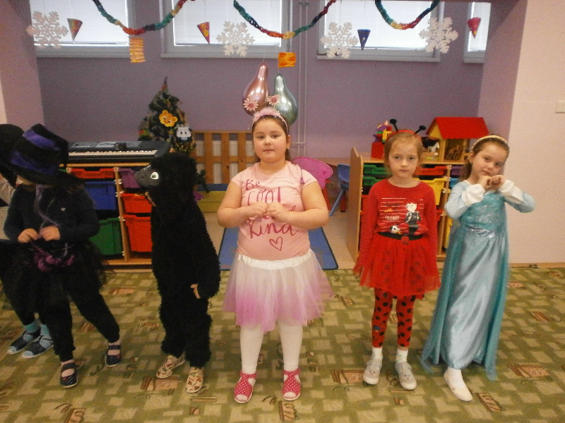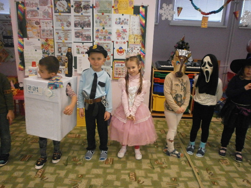 Naši predškoláci prežili karnevalový deň s radosťou, naplnený hrami, predstavením svojich masiek, súťažením, fašiangovou hostinkou a čarovaním v tajomnom vreci, z ktorého si každý za básničku, či pesničku, vyčaroval odmenu s farebným diplomom.