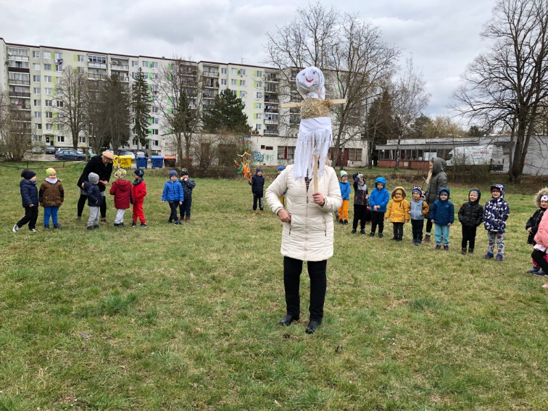 V stredu 6.4.2022 sme sa spevom, tancom a riekankami rozlúčili s Morenou - zimou. Nakoniec sme ju hodili do potoka, aby ju už konečne odniesla voda preč. Ako sa nám to podarilo, ukáže až čas. Tešíme sa na teplejšie dni plné hry a zábavy.