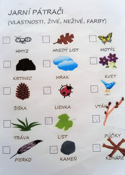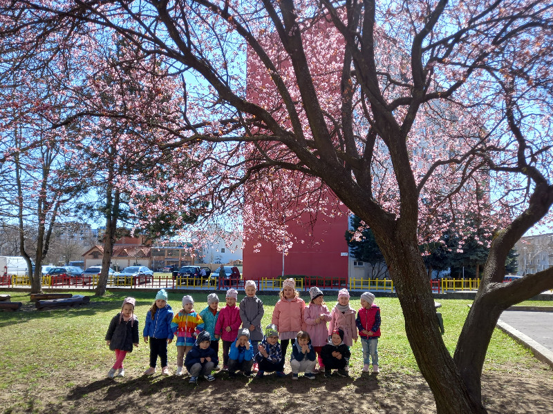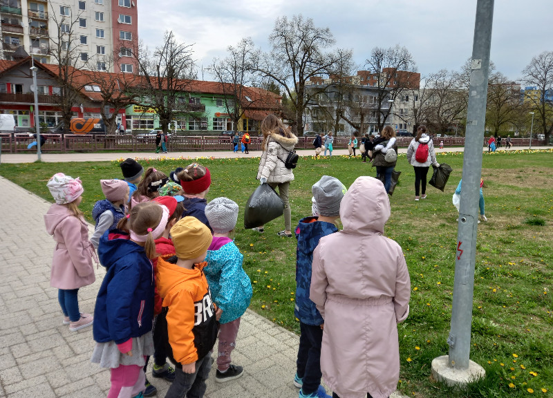 Už tradične si 22. apríla pripomíname Deň Zeme. S deťmi sme si vysadili semienka a kvety, prostredníctvom piesne „Veverička Triedička“ sme si ukázali ako správne separujeme odpad. Na vychádzke mestom sme stretli starších kamarátov, ktorí zberali v parkoch odpadky. Na turistickej vychádzke motivovanej hrou na Jarných pátračov sme pozorovali prírodné prostredie a život v prírode.