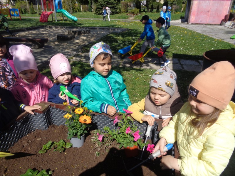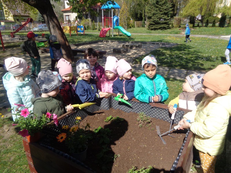 Fotogaléria - Jarné upratovanie a sadenie do záhona MŠ 142 trieda 1