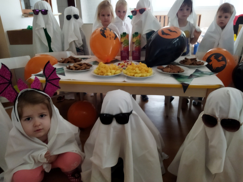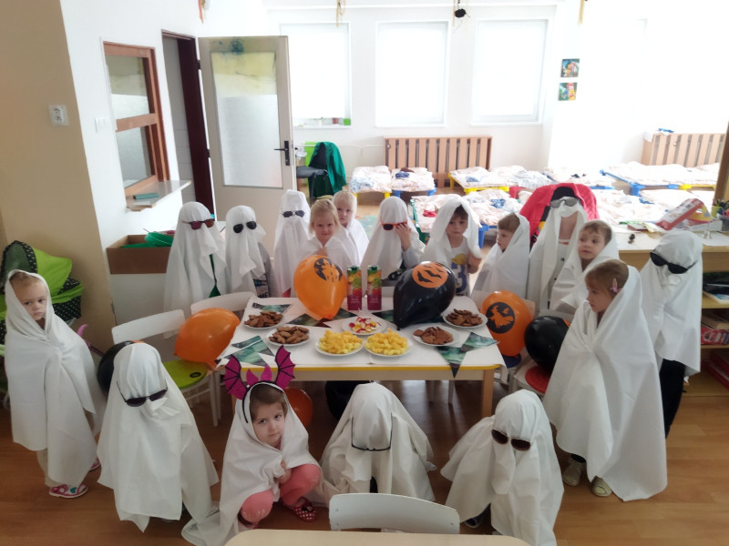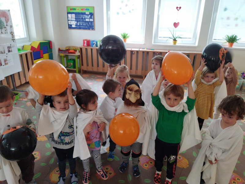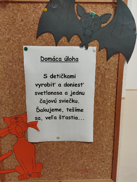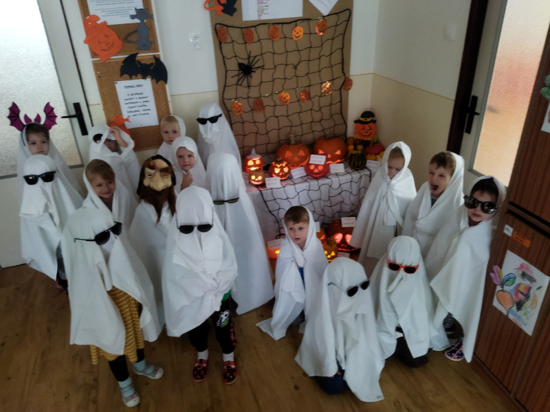 Jesenný farebný čas v našej triede Motýlikov plný zdravej zeleninky, ovocia, zdravý beh, hrabanie lístia na školskom dvore, hranie divadielka a hlavne vyhotovenie svetlonosov s rodičmi a strašidláááá!
