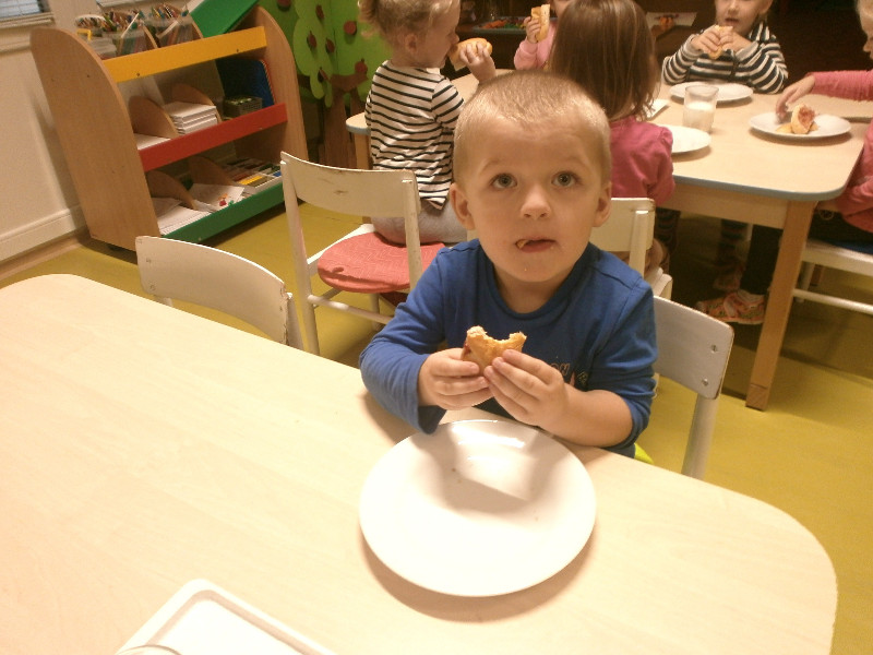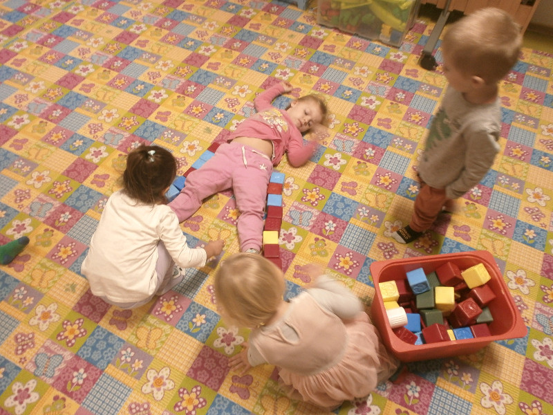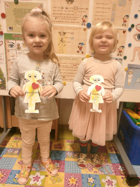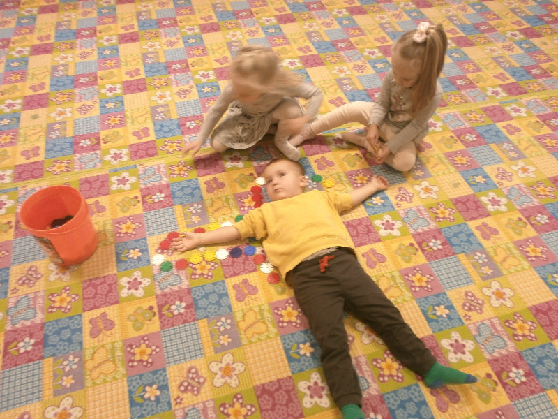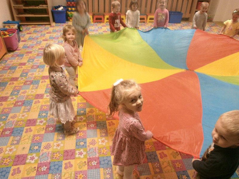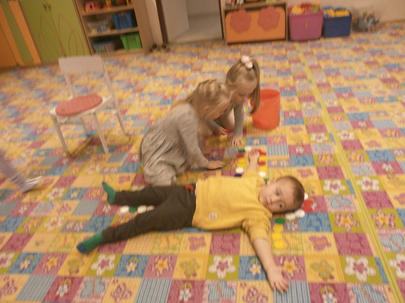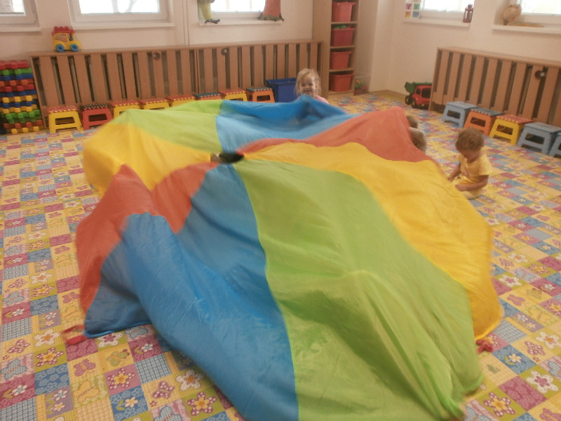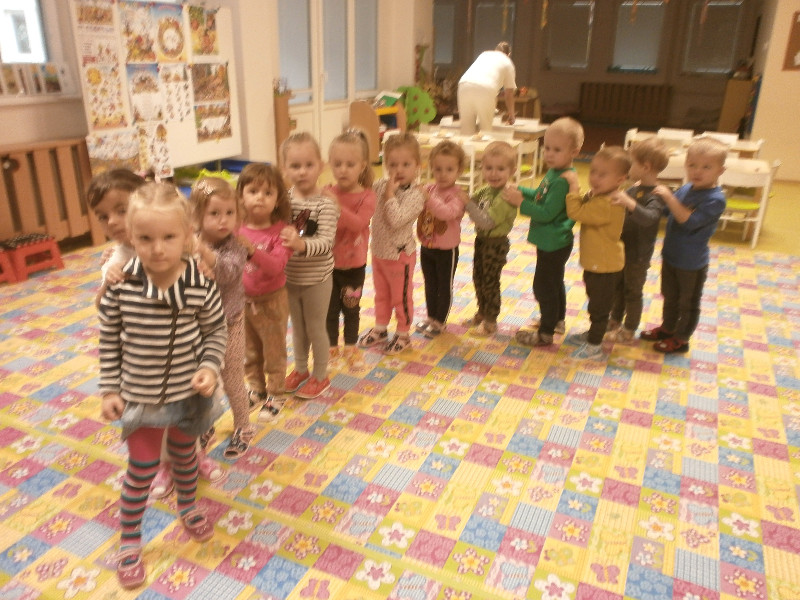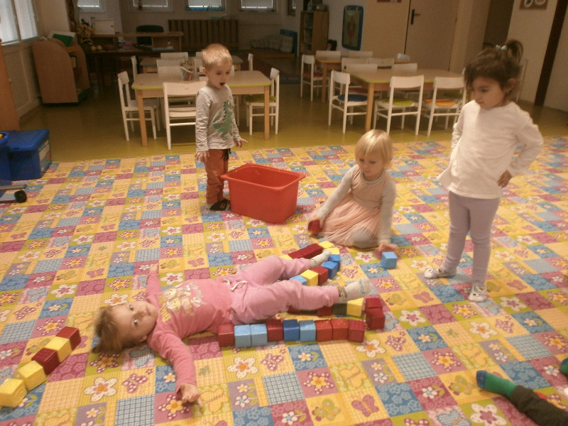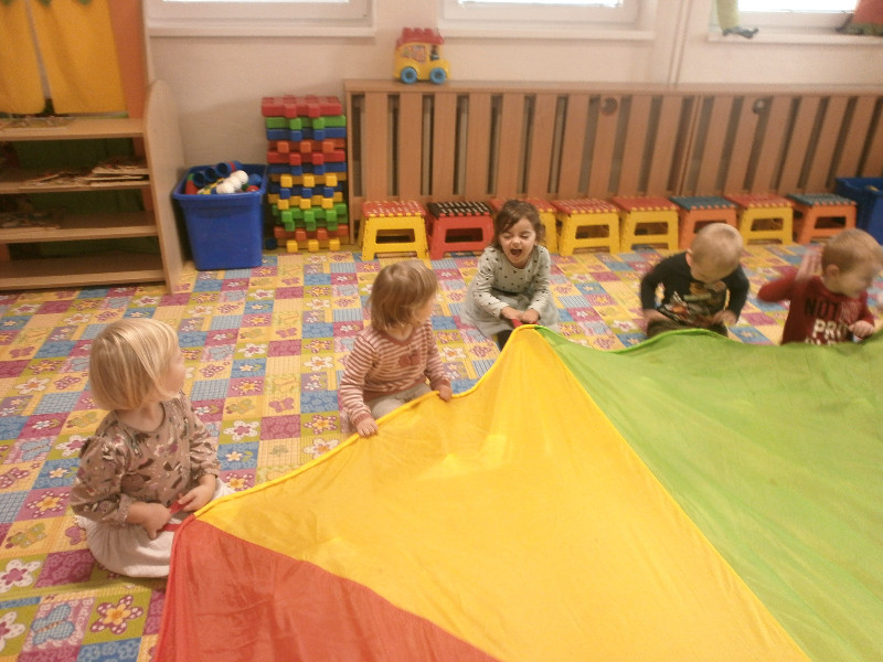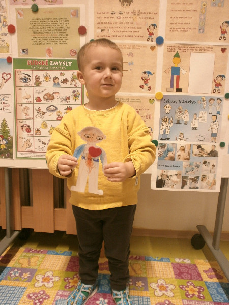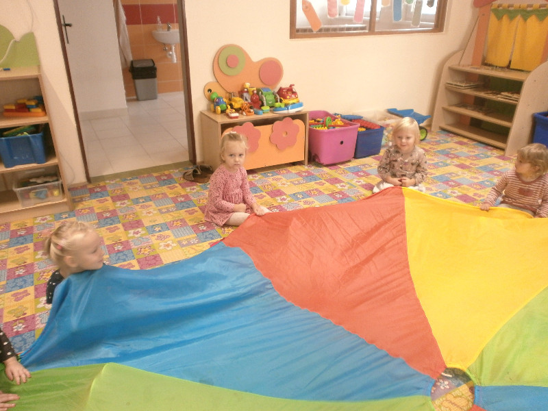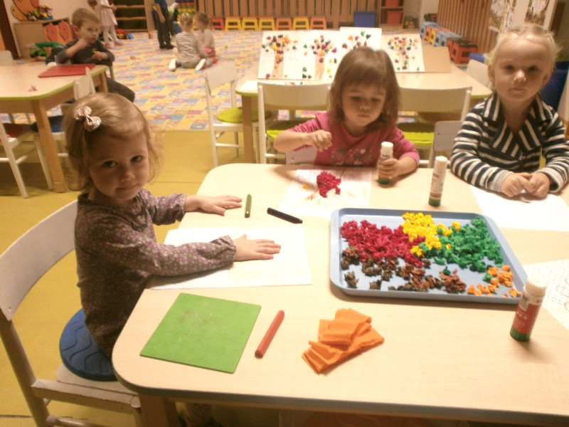 Farebný jesenný čas naši najmenší prežili veselými hrami, šantením na čerstvom vzduchu, vychádzkami s pozorovaním pani Jesene, vytváraním nových prác v oblasti výtvarných a pracovných činností s trénovaním si jemnej a hrubej motoriky, vytváraním obrysov ľudskej postavy podľa kamarátov, zábavnými hrami s padákom, vytváraním jesenných výtvorov so svojimi rodičmi.