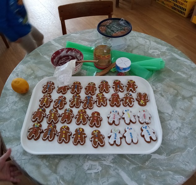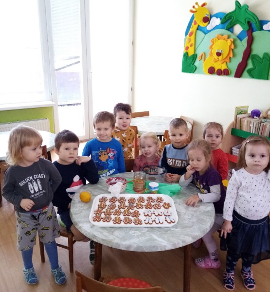 Náš prvý december sme sa pripravovali na Vianoce. Vyrobili sme čertíkov, čižmičku pre Mikuláša, vianočný pozdrav pre rodičov a dokonca sme ozdobili i perníkových panáčikov. Keď napadol prvý sneh, podarilo sa nám postaviť i snehuliaka.