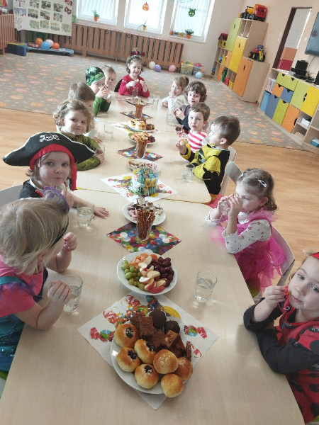V mesiaci február sme prežili veselý karnevalový týždeň plný zábavy, boli z nás krásne masky. Zabávali a učili sme sa hrou s kamarátkou vílou v hudobno – pohybovom a tvorivom dopoludní. Nezabudli sme ani na našich oslávencov, ktorým želáme všetkom len to najlepšie.