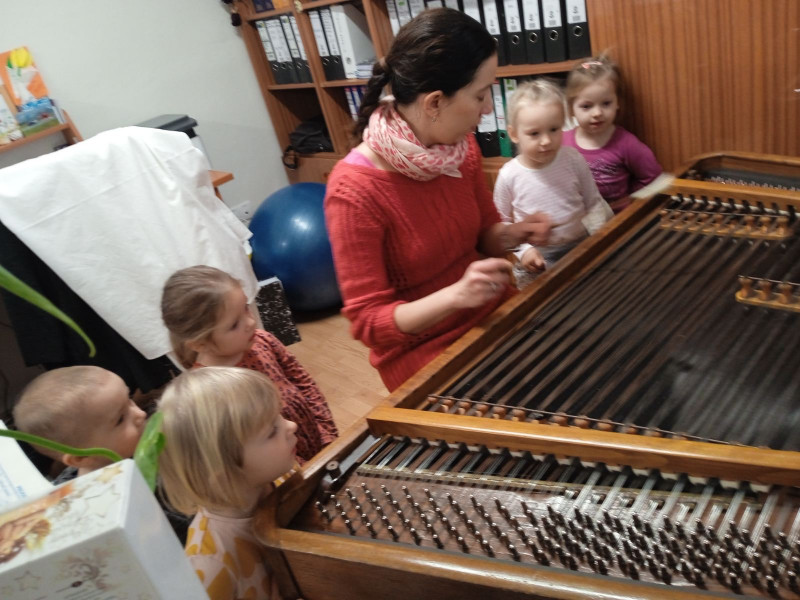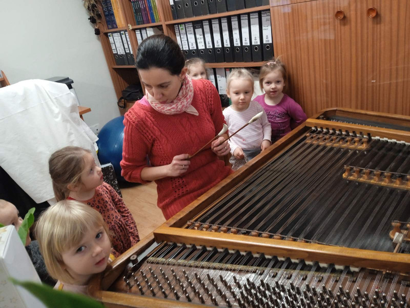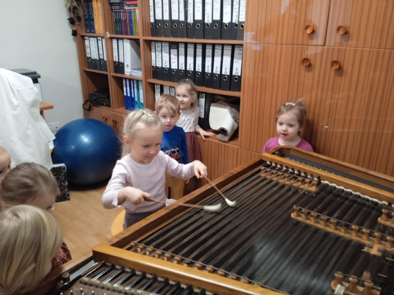 Fašiangové dni s našimi najmenšími boli naplnené hrami, zábavkami, karnevalom, ale i tancom a hudobnými nástrojmi. Na jednom veľkom cimbale si deti vyskúšali i zahrať a zároveň sa započúvali do melódie, ktorú im na cimbale zahrala p. Mareková.