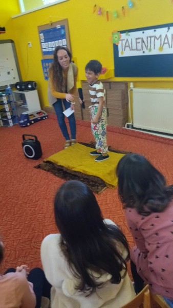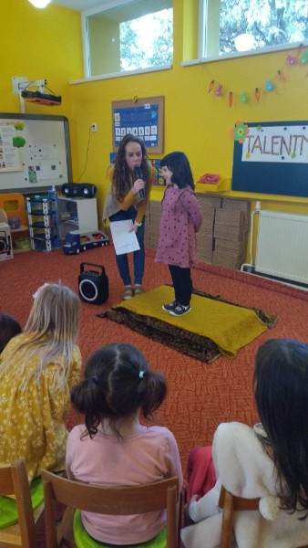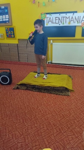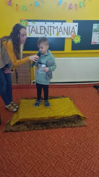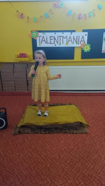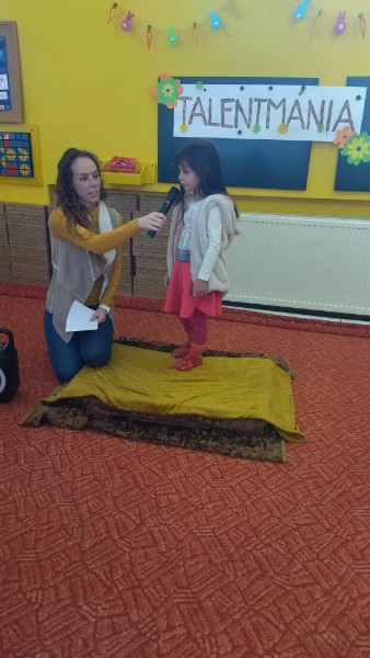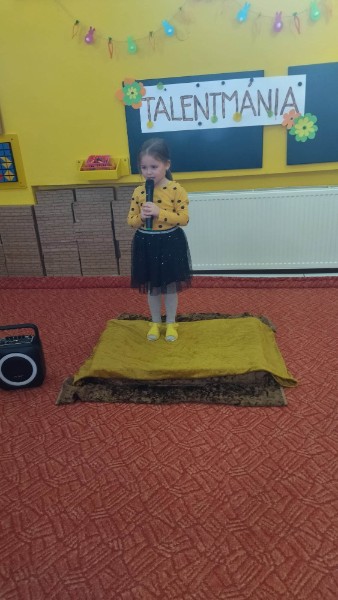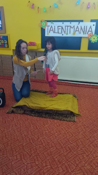 V našej triede sa na konci marca uskutočnila súťaž s názvom TALENTMÁNIA - prezentácia detského umeleckého prejavu. Deti sa doma s rodičmi mali naučiť básničku, pesničku podľa vlastného výberu. Niektorým sa veľmi pekne podarilo prekonať svoj strach, nabrať odvahu vziať si do ruky mikrofón a predviesť svoje vystúpenie pred ostatnými deťmi. Ďakujeme veľmi pekne rodinke Slamovej za poskytnutie profi karaoke zariadenia.