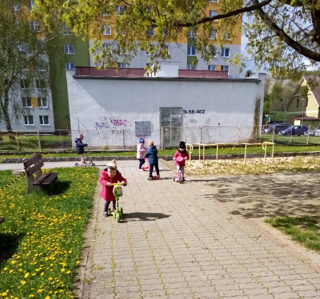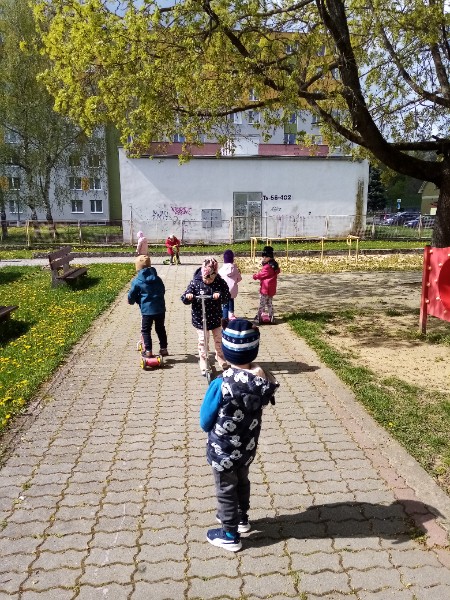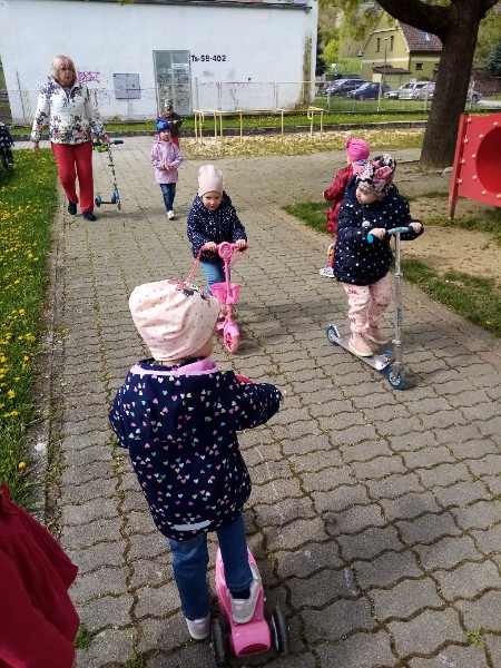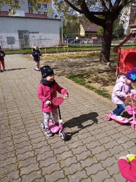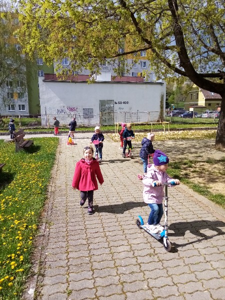 Počas týždňa dopravné prostriedky sme si vyskúšali našu šikovnosť na kolobežkách a odrážadlách.