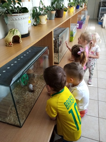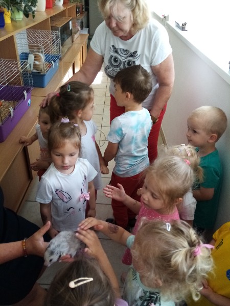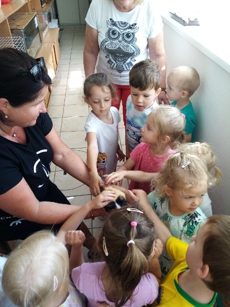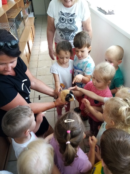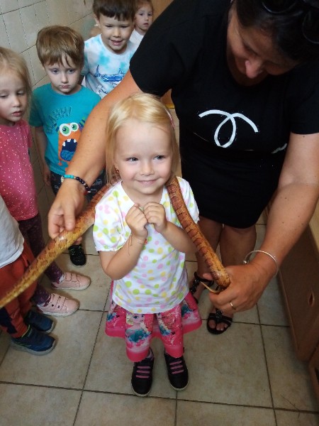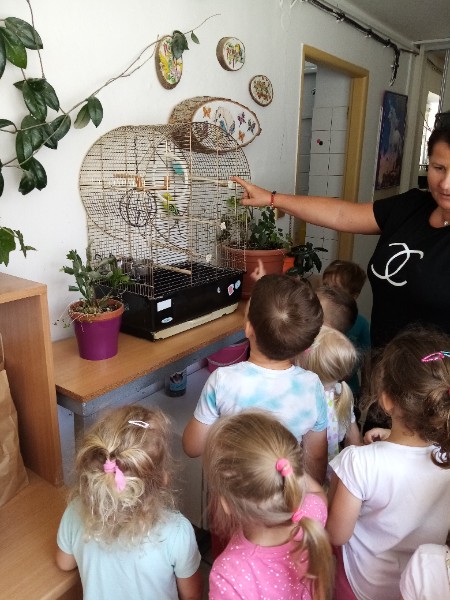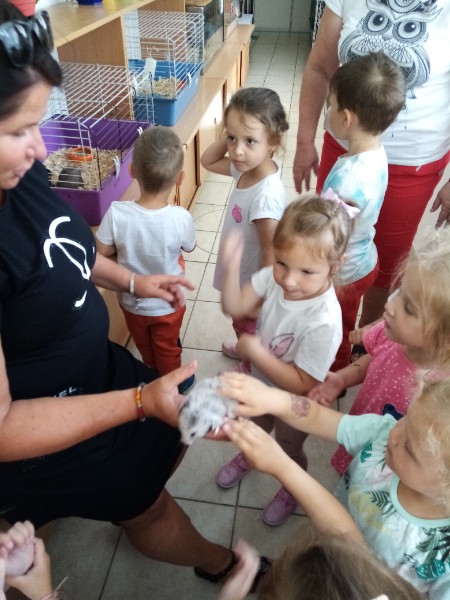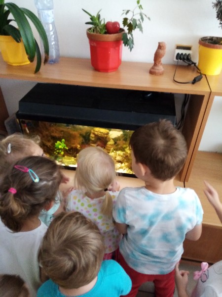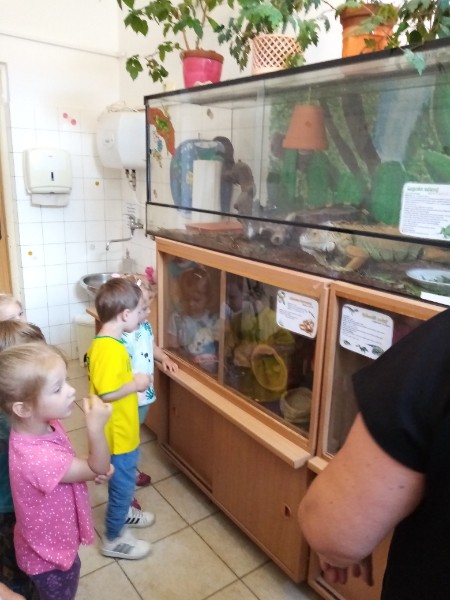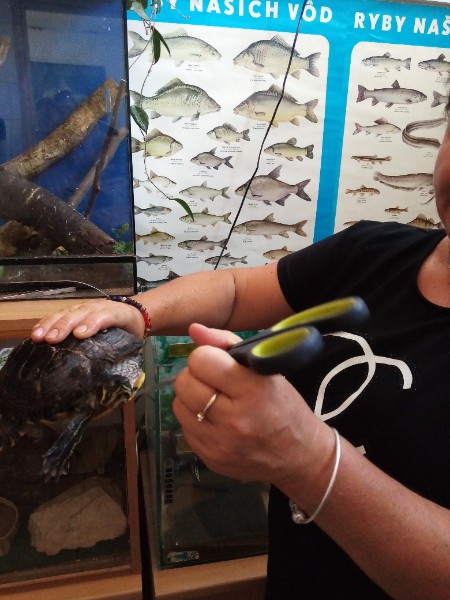 15.6. sme navštívili MiniZOO v CVČ v Starej Turej. Najskôr sme si o zvieratkách čo-to spolu s tetou Jankou povedali a potom sme išli pozrieť, aké zvieratká chovajú v CVČ. Videli sme v akváriách rybičky, v teráriách myšky, škrečkov, zajkov, nutrie, v klietkach andulky, papagáje. Kto bol smelý, mohol zvieratká aj pohladiť. Najväčším lákadlom bolo terárium s hadom.