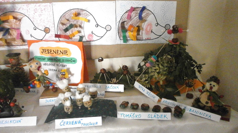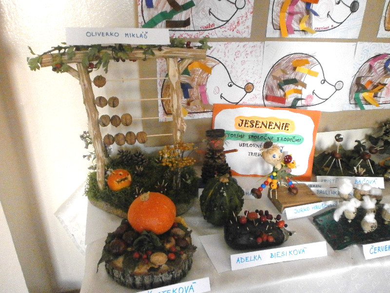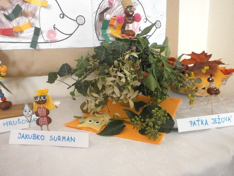 V jesennom období nám skrášlili priestor šatne krásne a kreatívne výrobky z ovocia a zeleniny, ktoré zhotovili deti spoločne s rodičmi. Deti boli na svoje výtvory hrdé a rodičom ďakujeme za aktívnu spoluprácu.