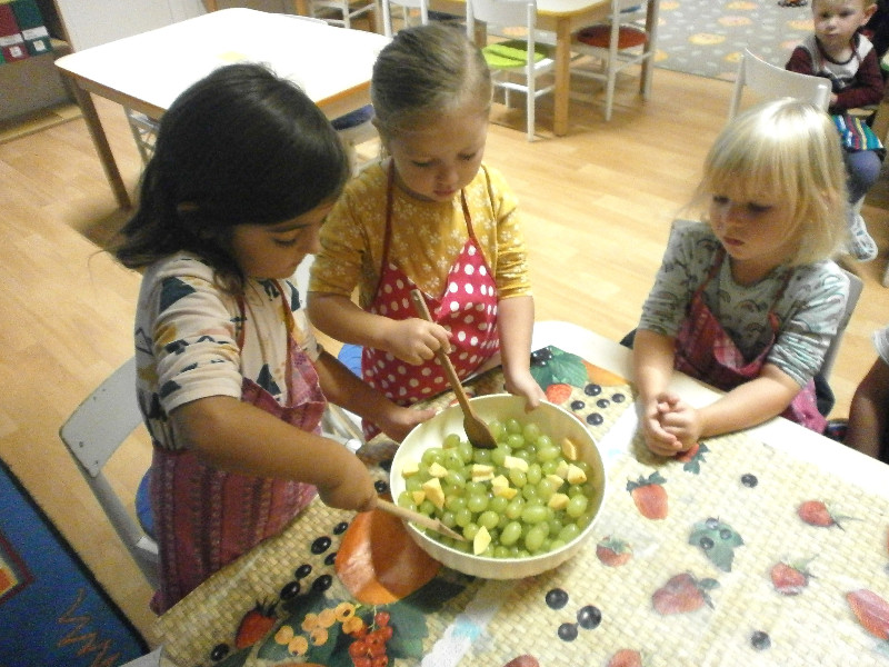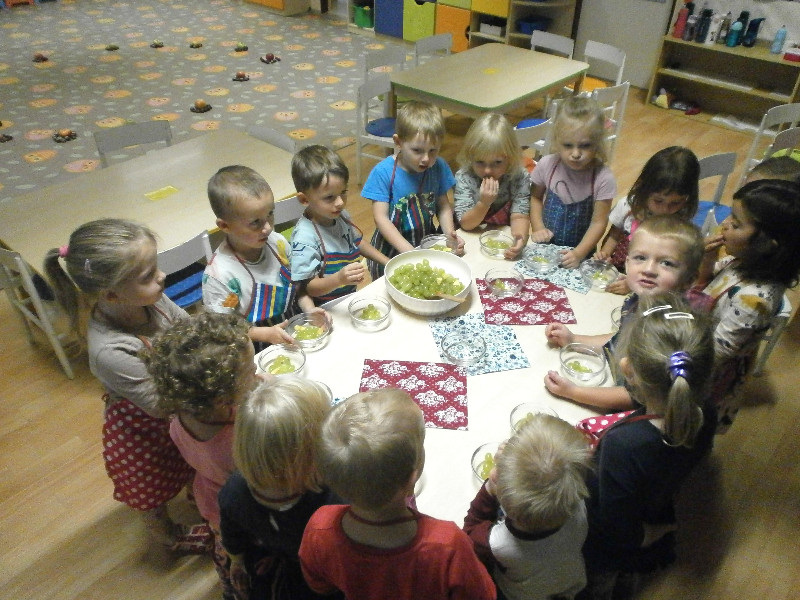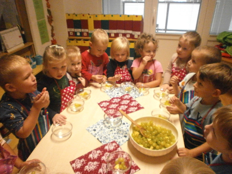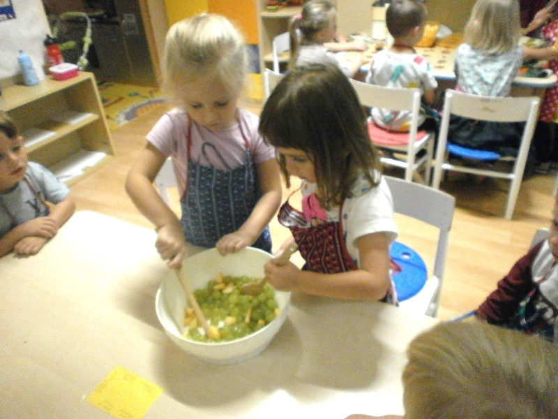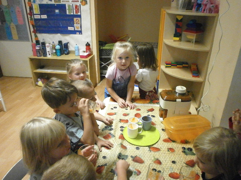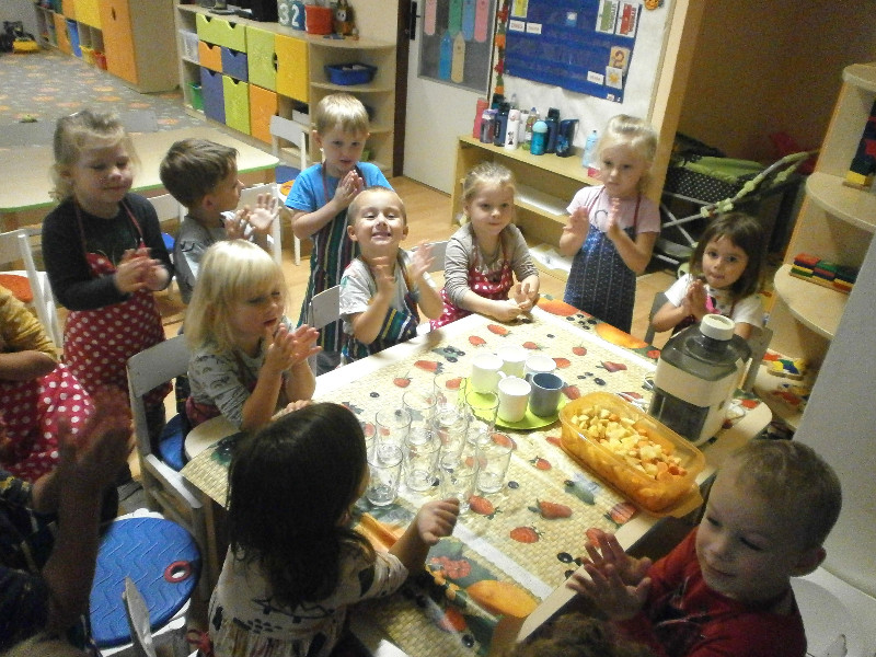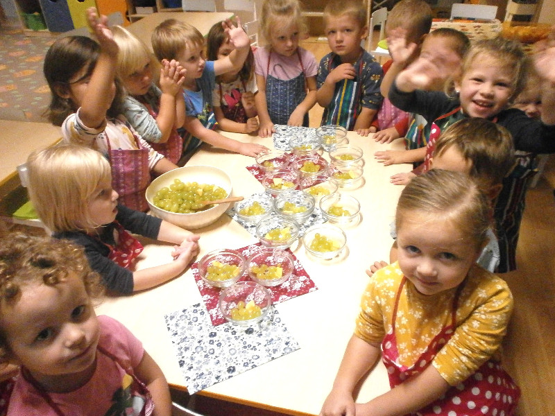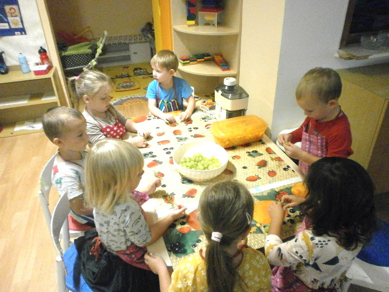 V našom Týždni zdravého stravovania prostredníctvom zážitkového učenia nám naši Malí kuchári pripravili zdravý ovocný šalátik a s pomocou pani učiteľky i mrkvovo-jablkovú šťavu. Všetko riadne natrhali, umyli, premiešali, naservírovali a pre svoje zdravé brušká všetko s chuťou zjedli.