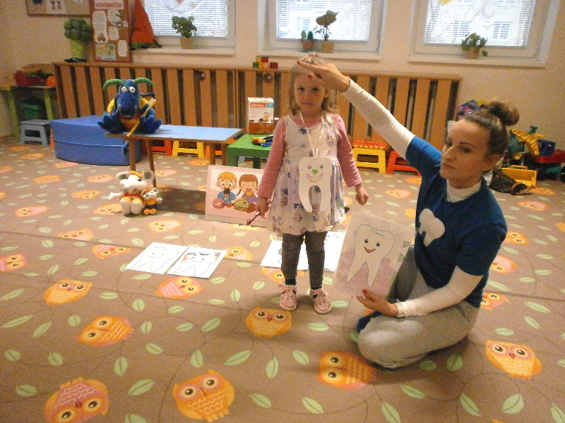 Usilovné včielky navštívila v triede p. dentálna hygienička, ktorá veľmi príjemným, odborným , praktickým a vekuprimeraným spôsobom deťom priblížila, ako sa starať o zúbky, ako predchádzať vzniku zubného kazu. Ďakujeme a tešíme sa na ďalšie takéto stretnutia s odborníkom.