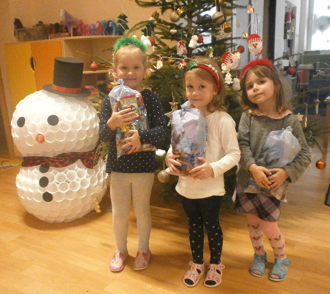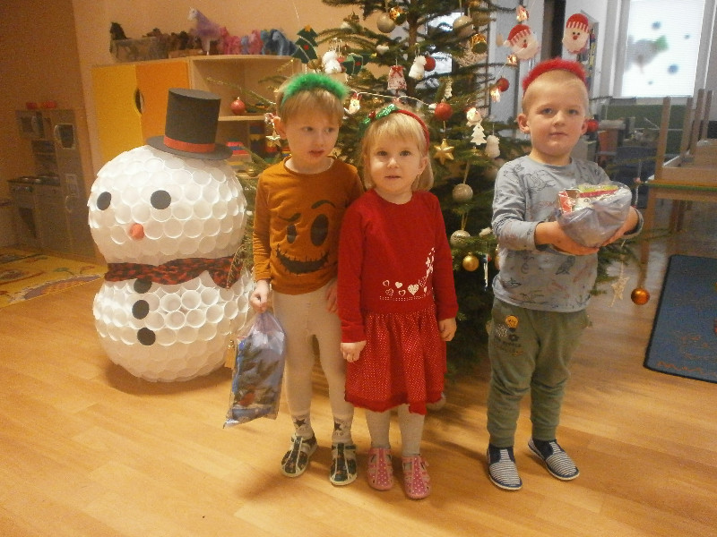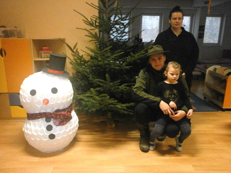 Zároveň chceme touto cestou veľmi pekne poďakovať rodine našej kamarátky Elišky Hanky Juríkovej, hlavne jej mamine a bratovi za krásny živý stromček, ktorý nám venovali do triedy, taktiež za vlastnoručne vyrobeného veľkého snehuliaka, ktorý nám, ako vianočný stromček, krášli našu triedu i za vianočné ozdoby., ktoré nám venovali. Deti v triede majú z týchto darčekov veľkú radosť.