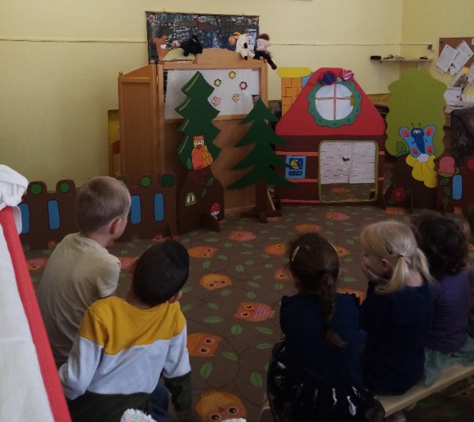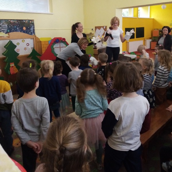 28.2.2024 si pani učiteľky pre nás pripravili divadielko "Sestričky kozičky". Kozičky nám pripomenuli, aby sme si dávali pozor na cudzích ľudí a doma neotvárali dvere bez mamičky , či ocka.