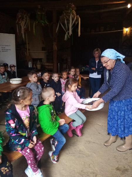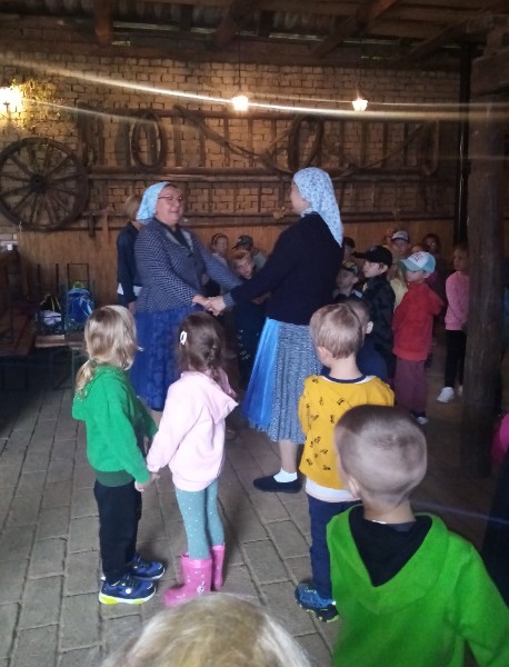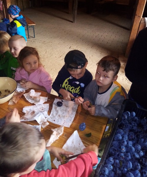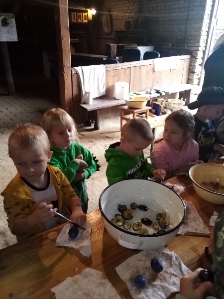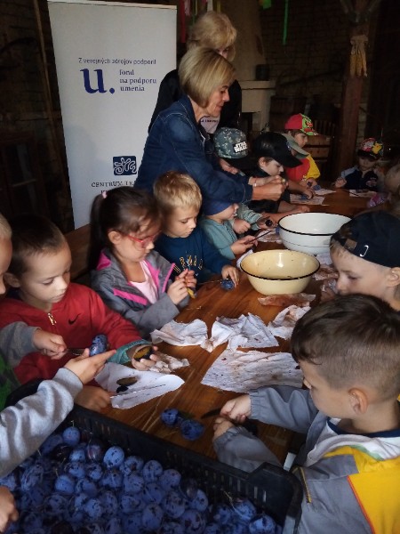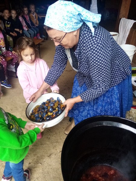 V pondelok 9.9.2024 sme sa na Gazdovskom dvore na Turej Lúke dozvedeli, ako sa varí slivkový lekvár. Keďže sme šikovné deti, odkôstkovať slivky sme zvládli celkom hravo. S gazdinami sme sa naučili tanček "Šla Anička do zelí" a nakoniec sme si pochutili na lekvárom chlebíku.