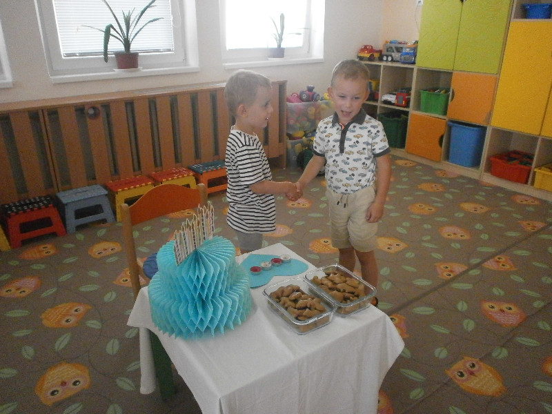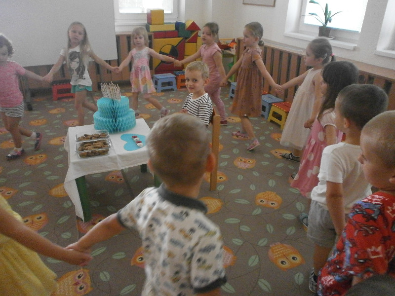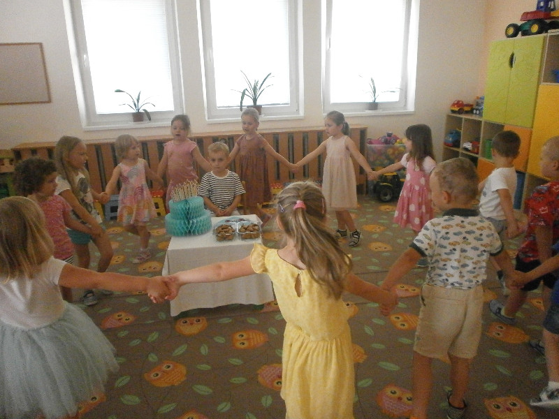 V mesiaci jún sme srdečne blahoželali nášmu kamarátovi Matúškovi Maďarkovi k jeho sviatku, nech je zdravý a šťastný, tešili sme sa z turistickej vychádzky, tancovali sme rodičom na slávnostnej besiedke, starali sme sa o zasadenú zeleninku a pochutnali sme si i na chutnej zmrzlinke.
