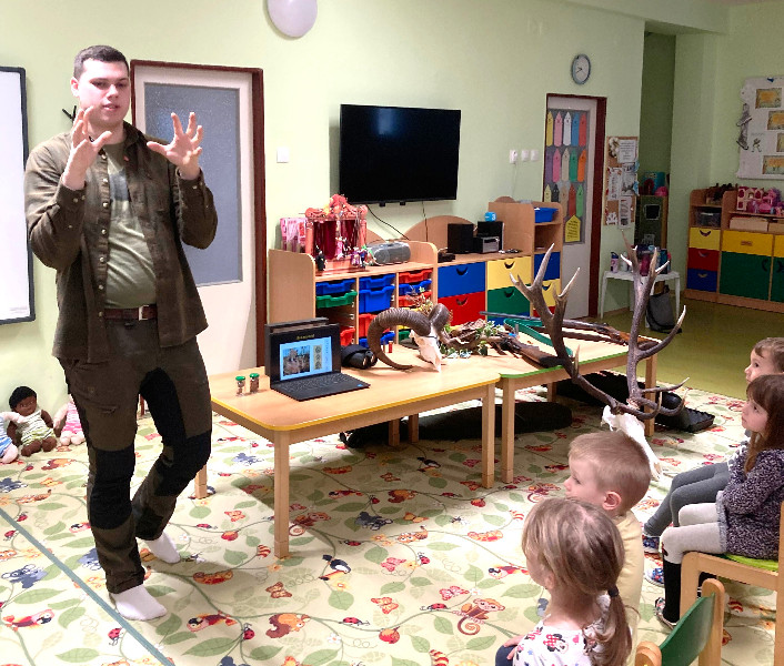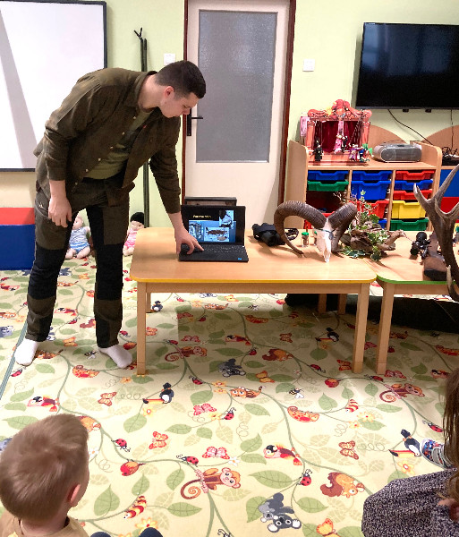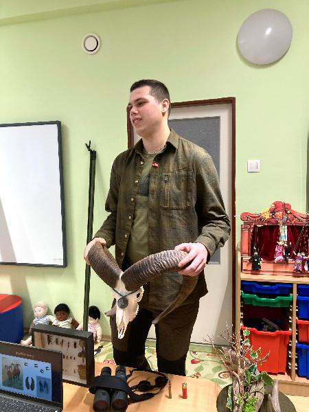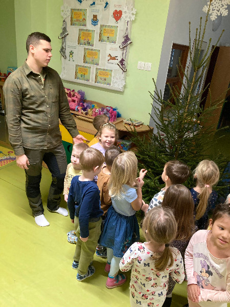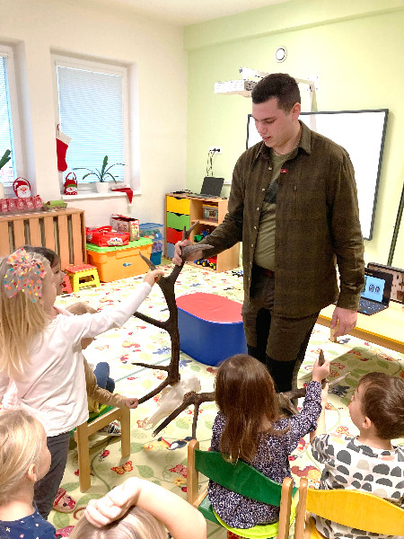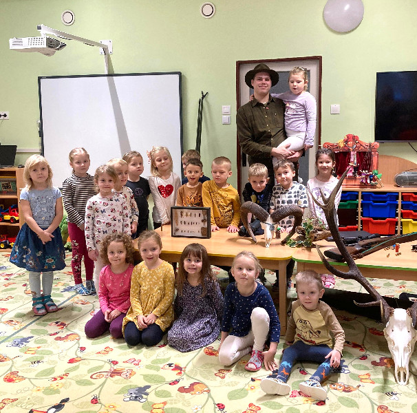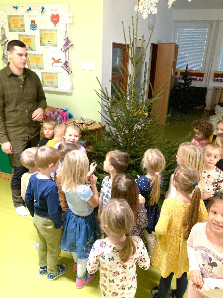 Navštívil nás brat našej usilovnej včielky Elišky Juríkovej p. Kristián Gregor, poľovník srdcom i dušou. Pripravil si pre naše deti zaujímavé rozprávanie, ukážky, hry, priniesol nám živý stromček z lesa k Vianociam a nezabudol ani na sladkú odmenu z poľovníckeho klobúka a Eliška s jej maminou na plnú krabičku chutných mafiniek. Kristiánovi ďakujeme za pútavé a náučné dopoludnie. Pretože je študent, želáme mu veľa úspechov v škole a tešíme sa na ďalšie stretnutie.